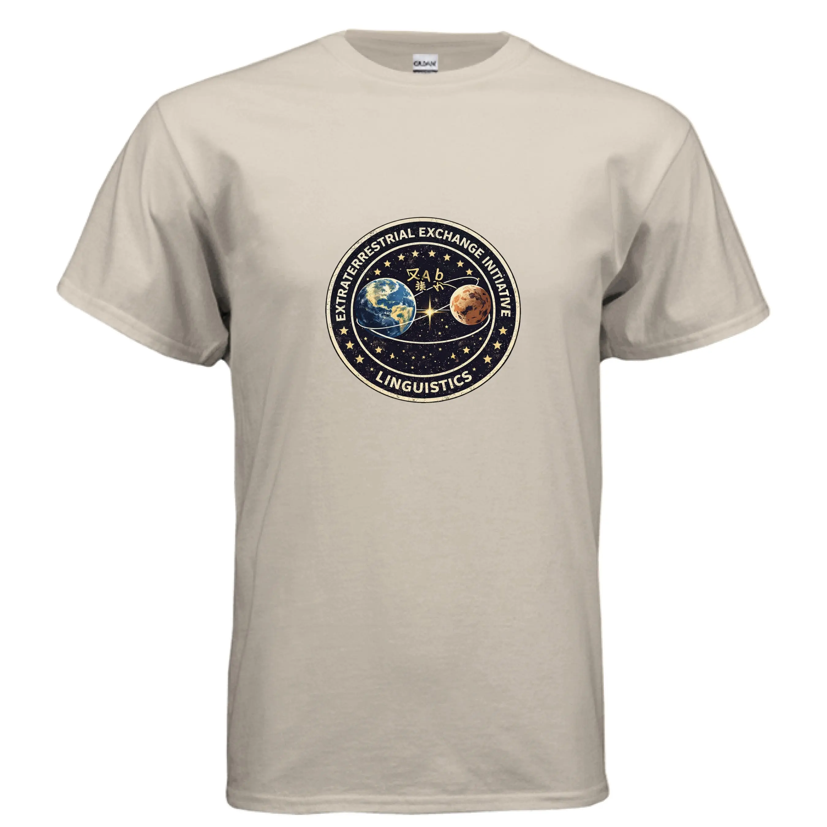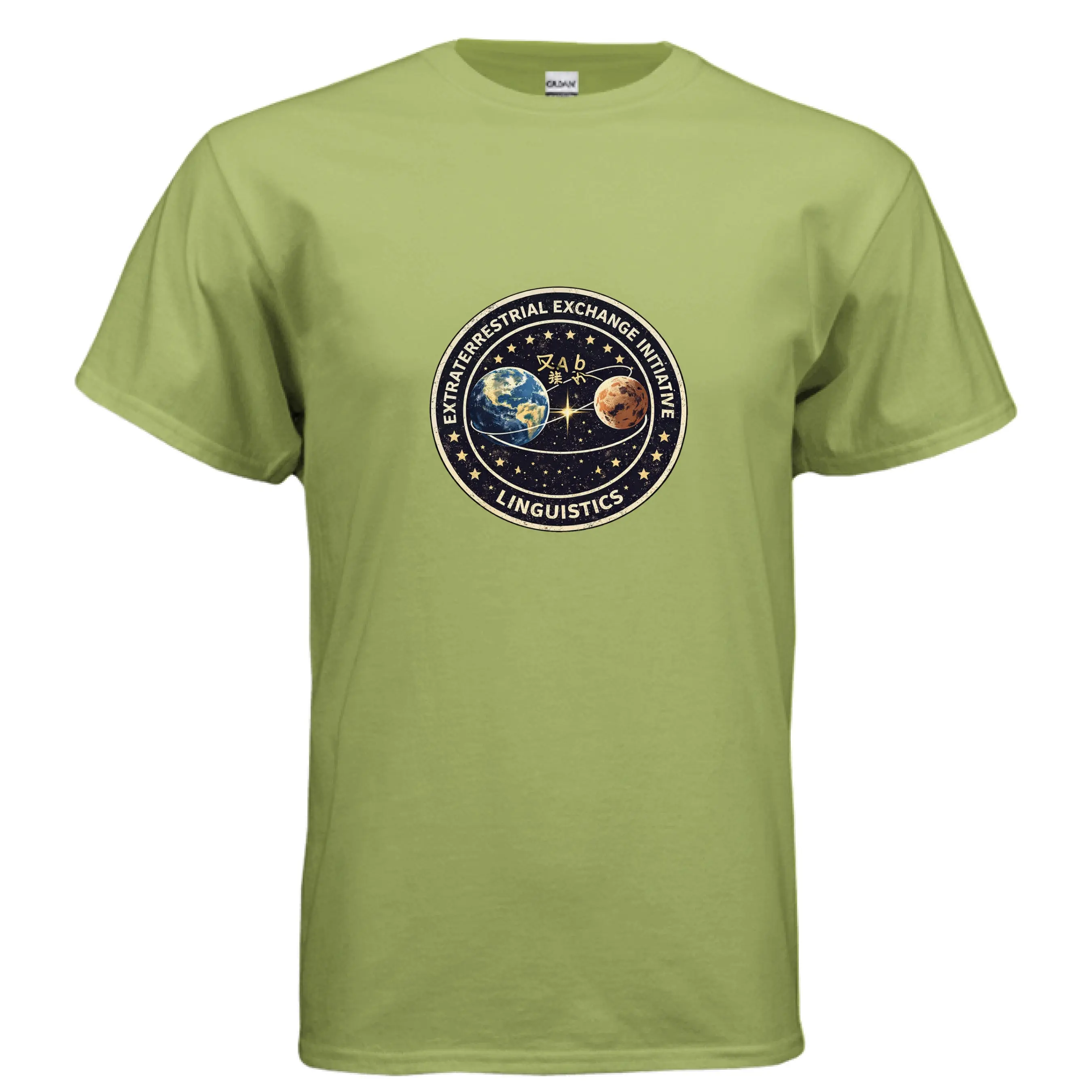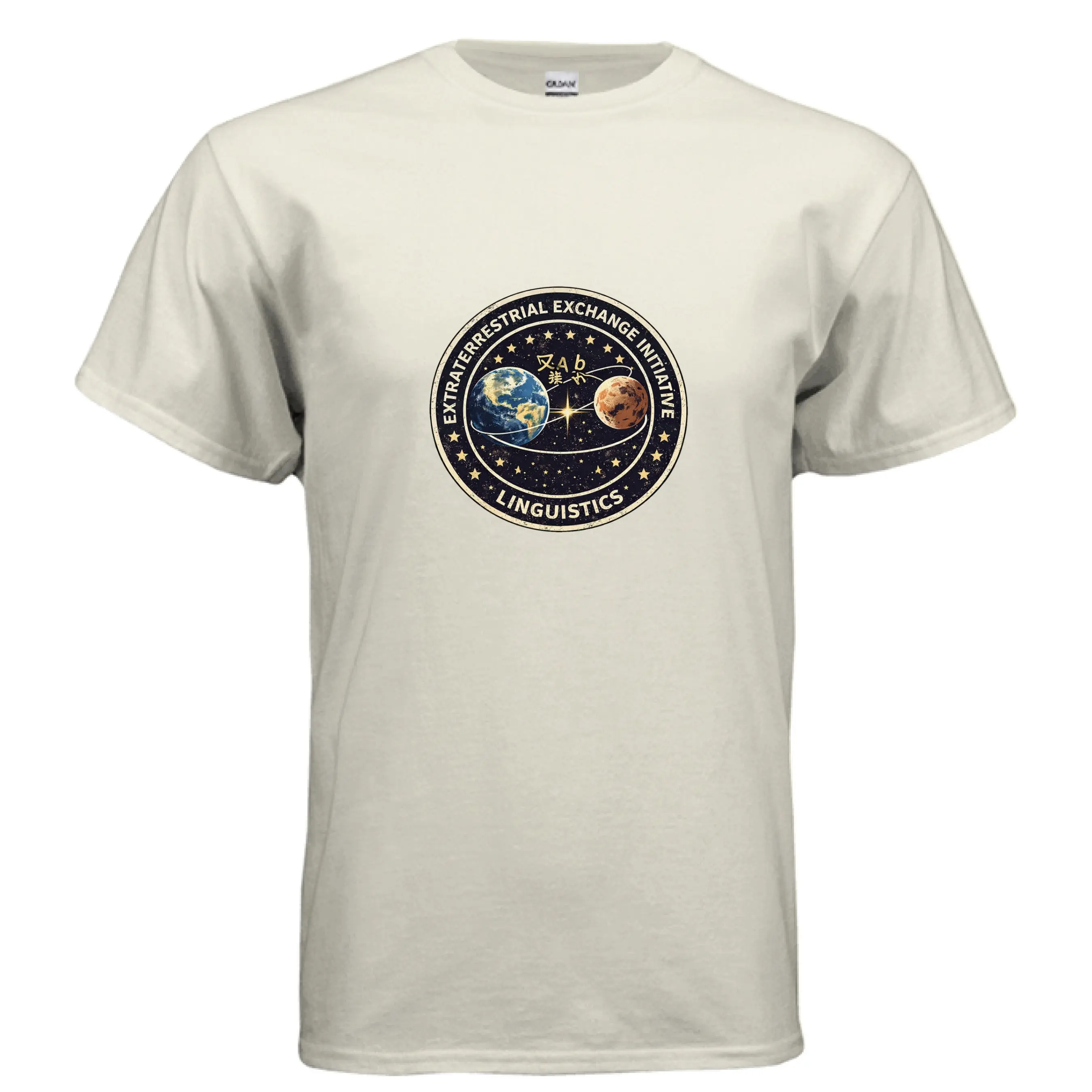 Step into the unknown with the Extraterrestrial Exchange Initiative – Linguistics Division design, a vintage-inspired badge that feels pulled straight from a classified interstellar program. Featuring Earth and an alien world connected through orbital paths and symbolic language glyphs, this design represents the bridge between civilizations—where communication is the mission.
