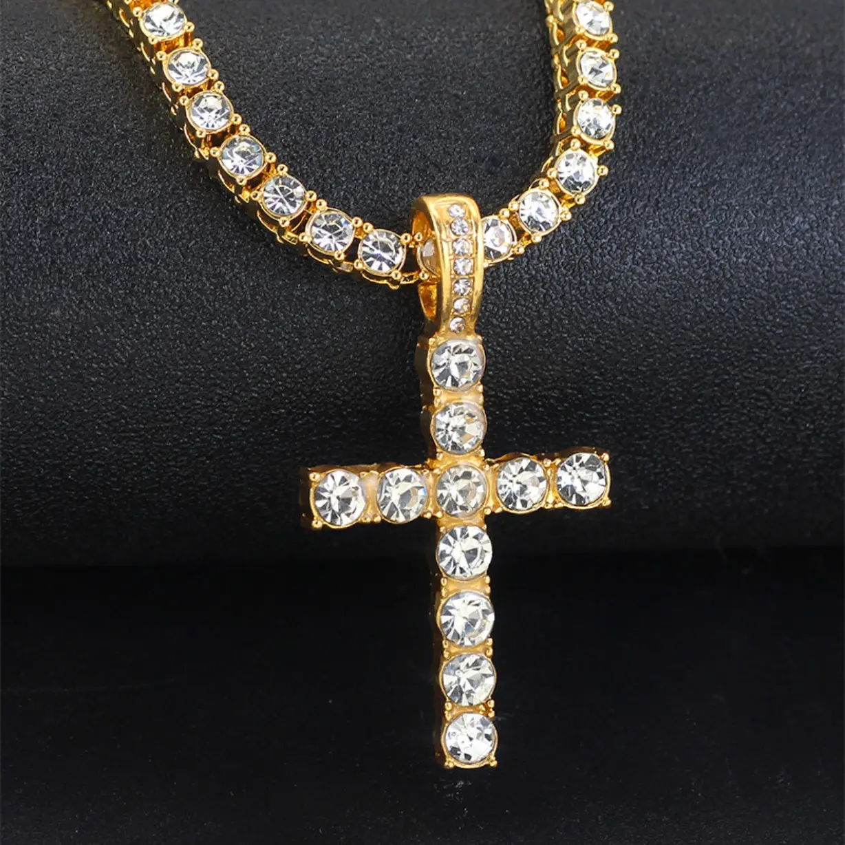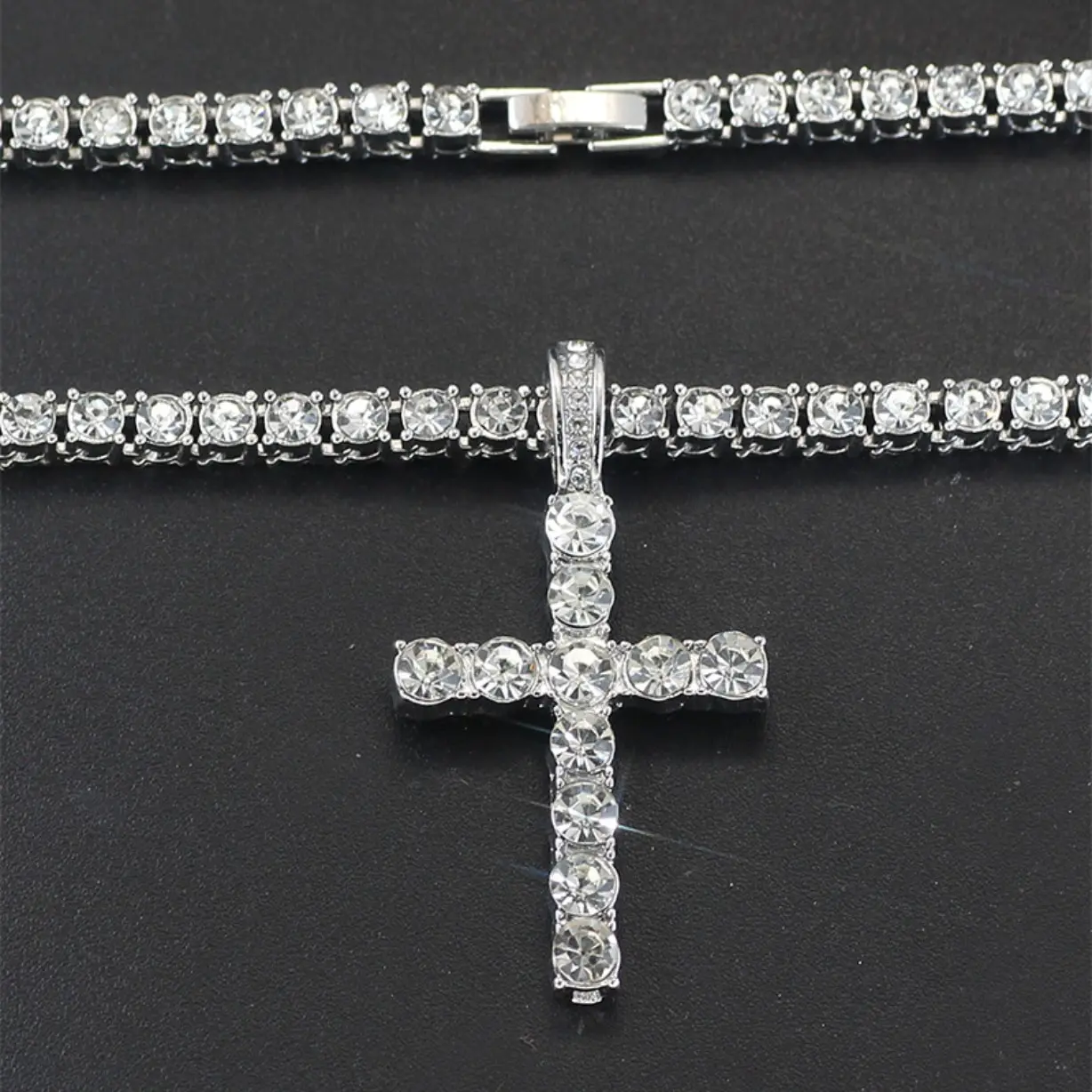 ·2PCS layered set includes a bold 14mm Cuban chain and a cross tennis chain, creating a powerful hip hop statement look.
