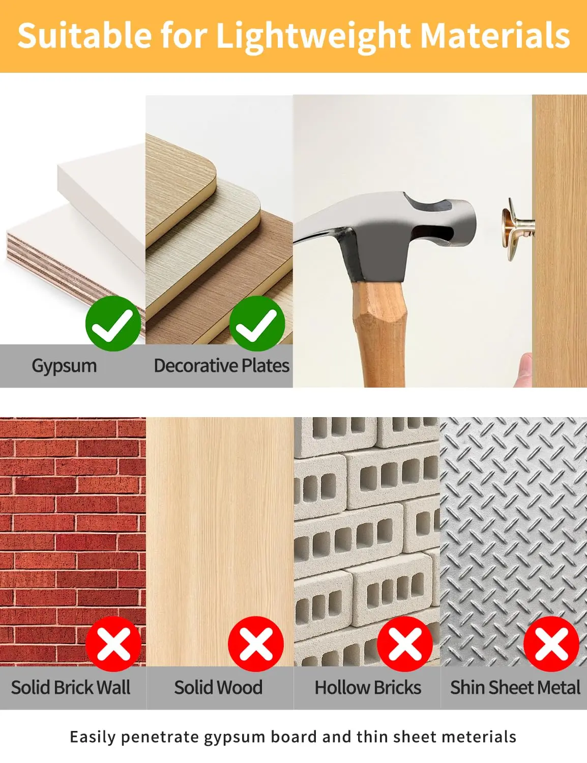 ·HOLDS STRONG IN WEAK WALLS – NO CRUMBLING OR SLIPPING: Our self drilling anchor screws deliver a firm, reliable grip on drywall, hollow walls, fiber cement board,thin wood panels-even lightweight bricks or insulation boards.No cracking, no shifting-they lock in tight on any surface