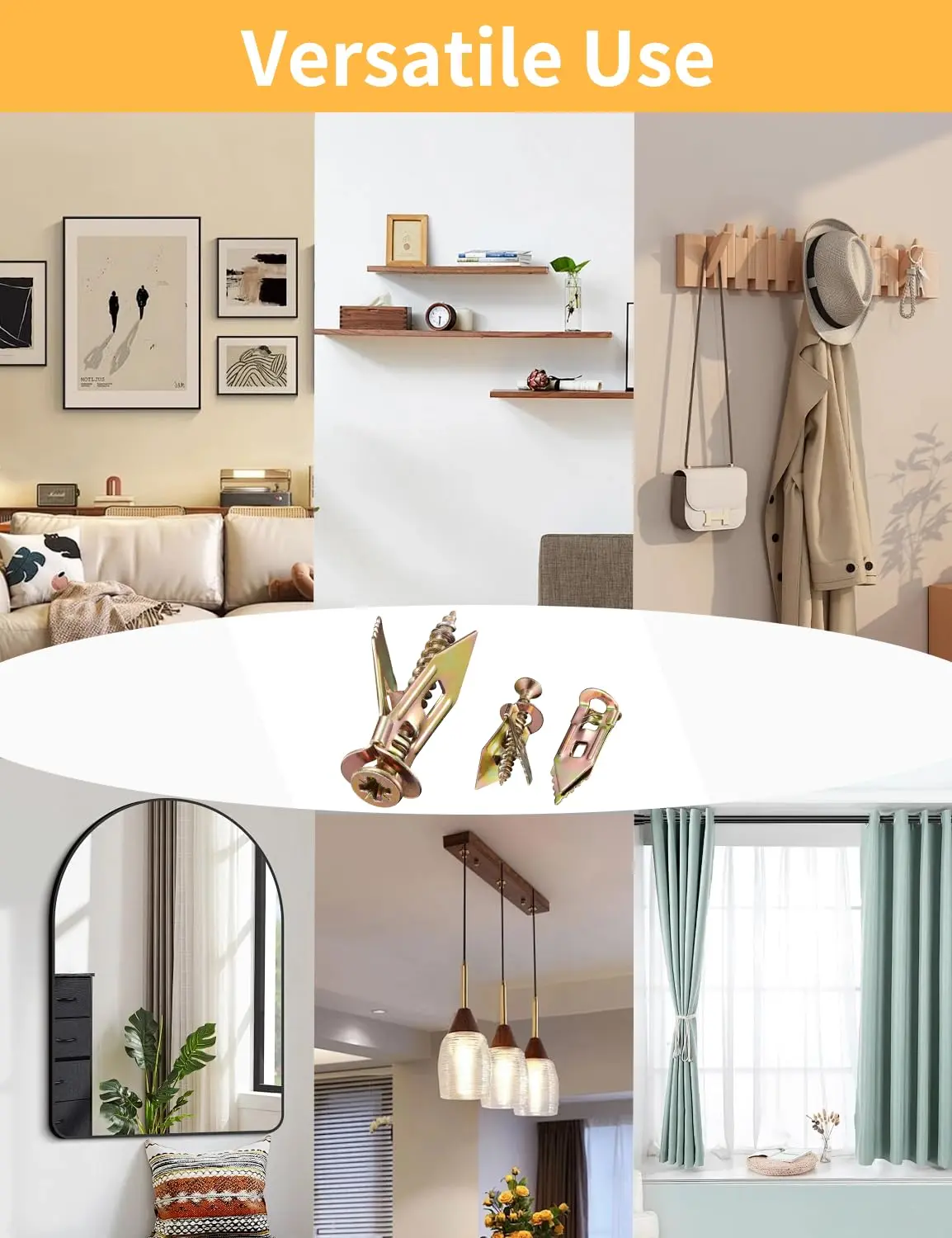 ·DRILL-FREE INSTALL – FAST, CLEAN & RENTER-FRIENDLY: Forget the tools - our self drilling drywall anchors go in within seconds! Remove screws anytime without damaging the wall (anchor stays in place).No cracks, no mess, no lost deposits. Perfect for apartments, dorms, or quick home upgrades