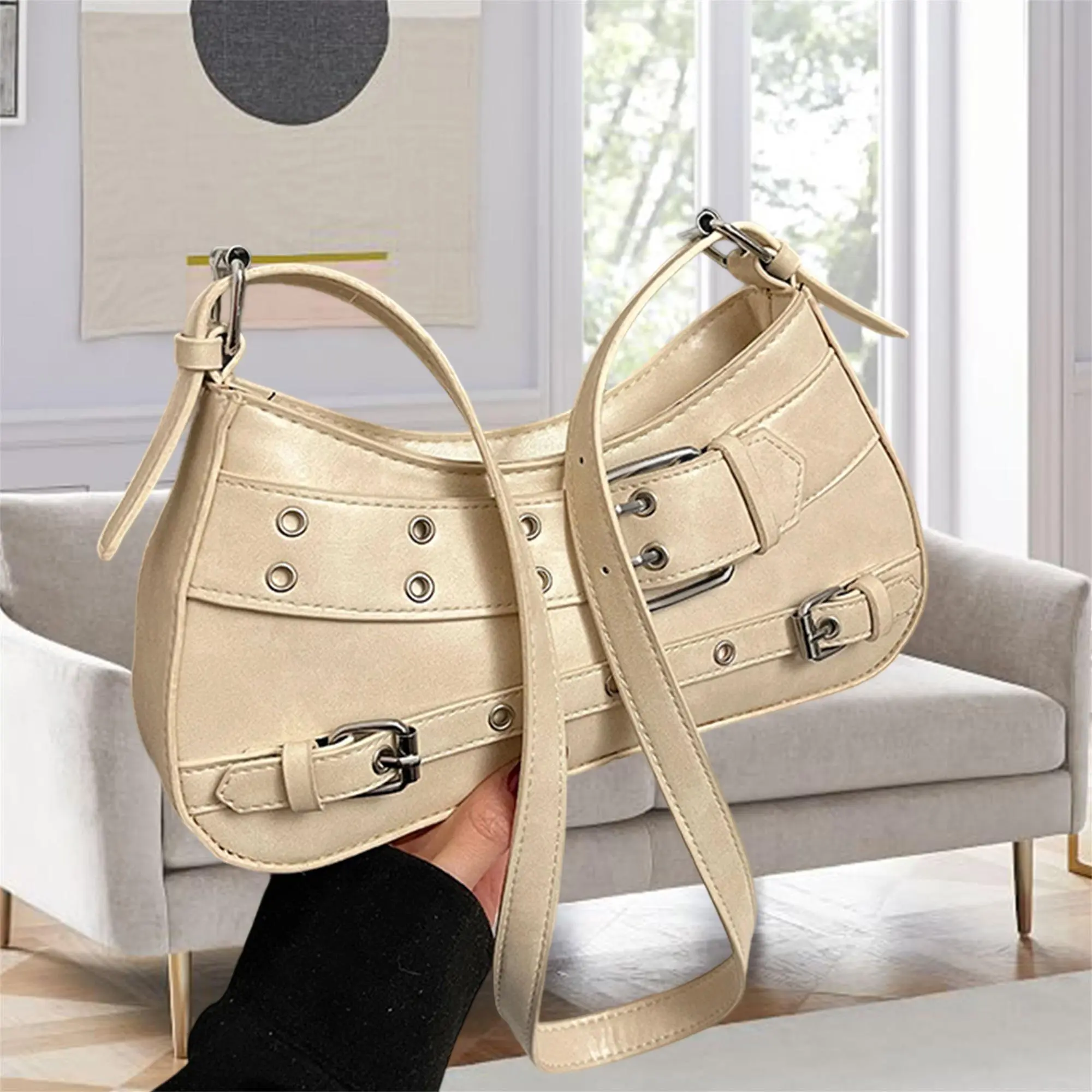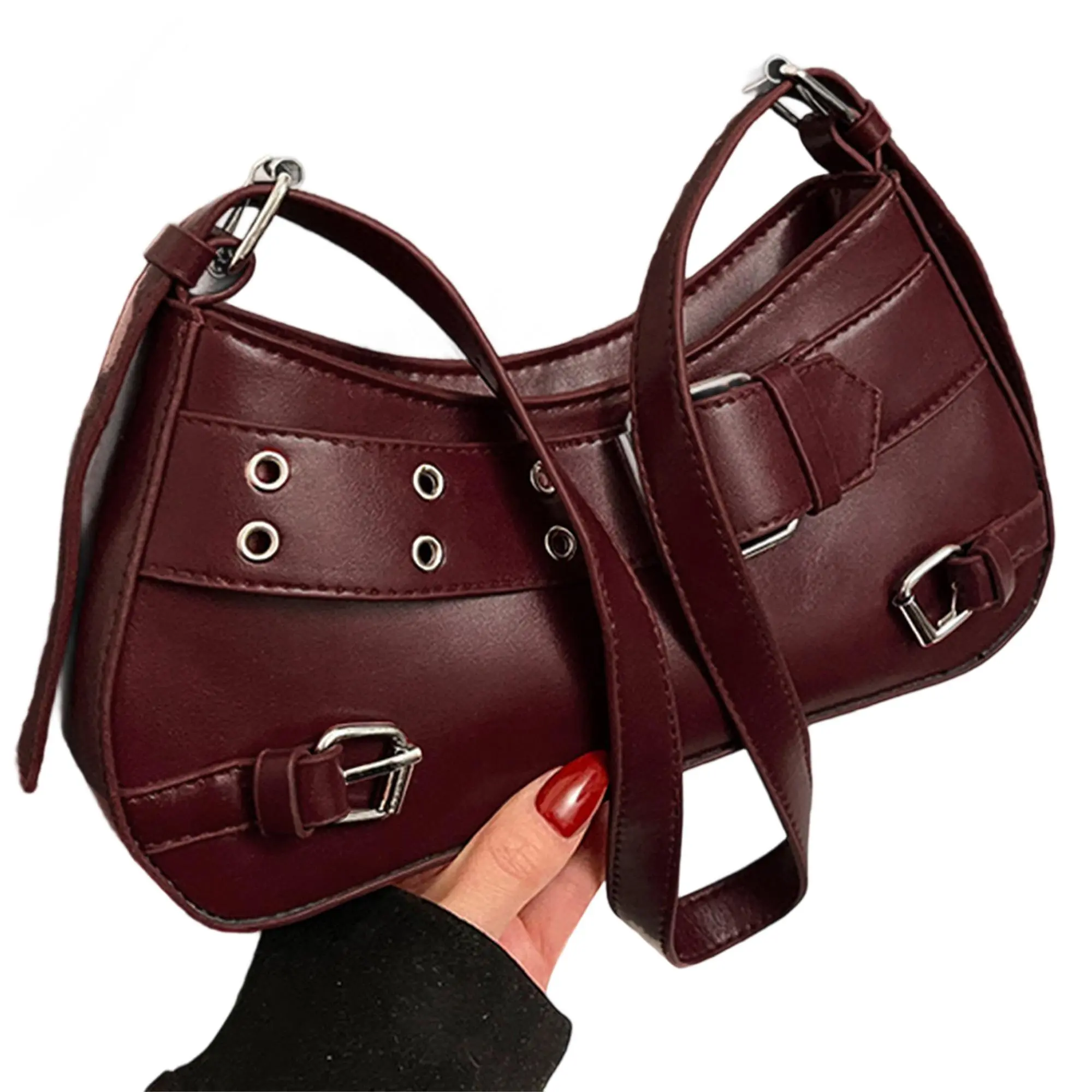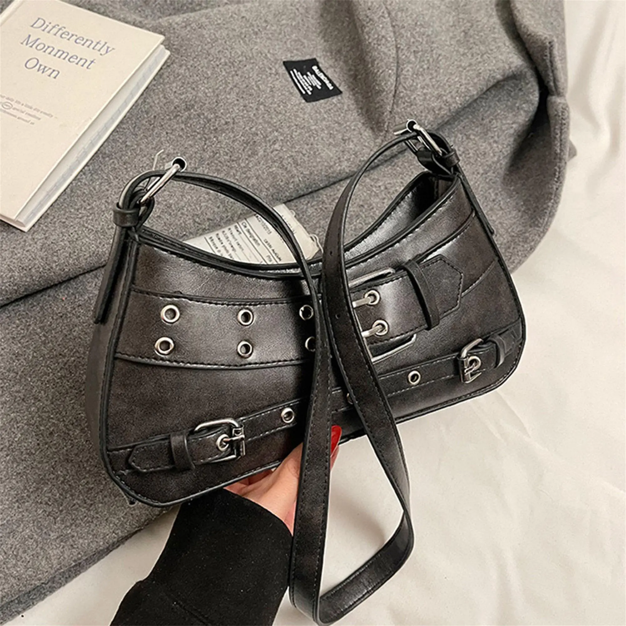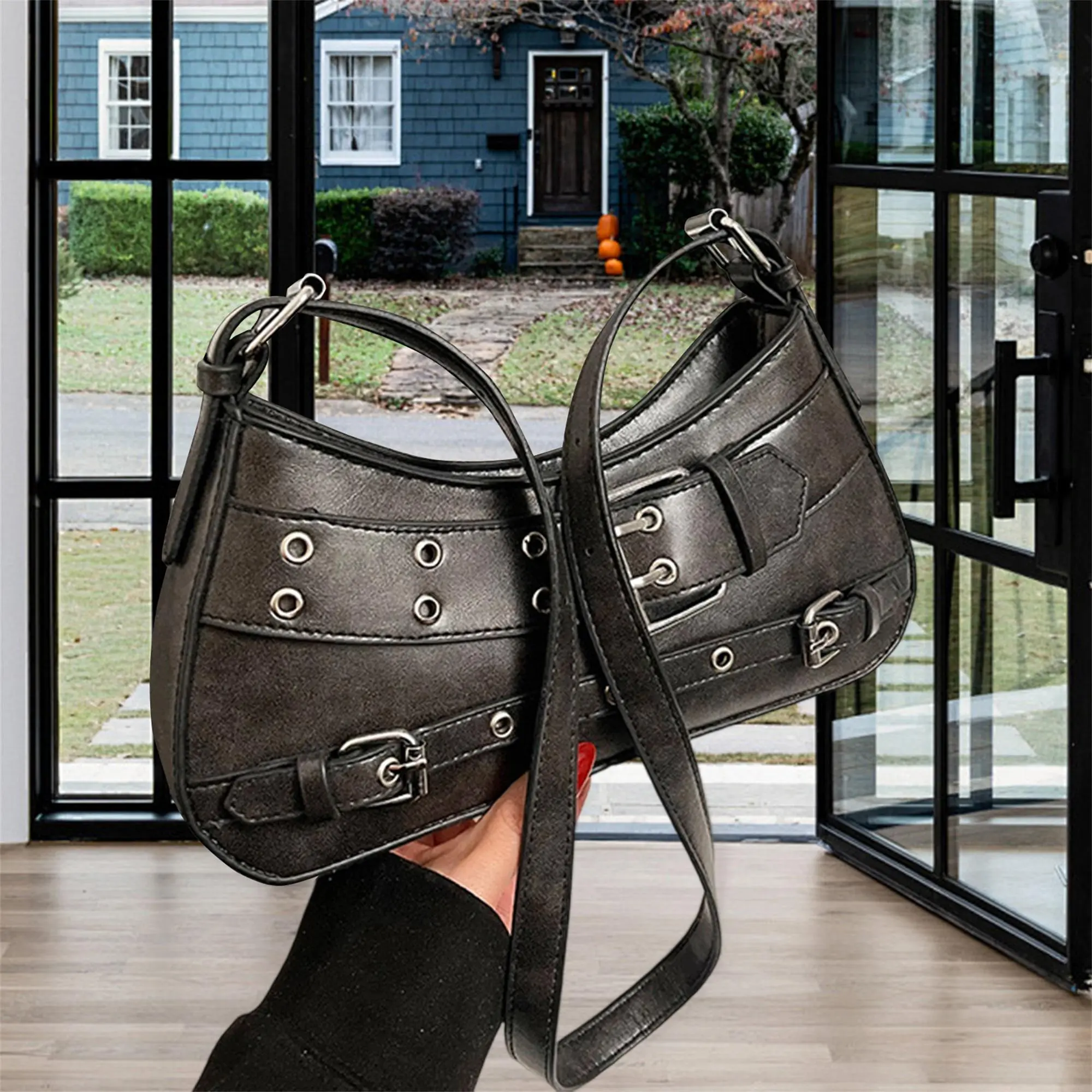 Stylish Leather Crossbody Bag with Adjustable Buckle Strap and Detachable Long Shoulder Strap for Women