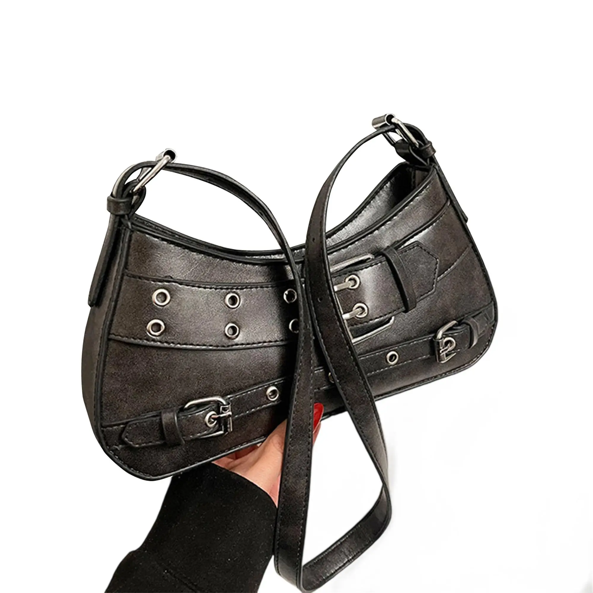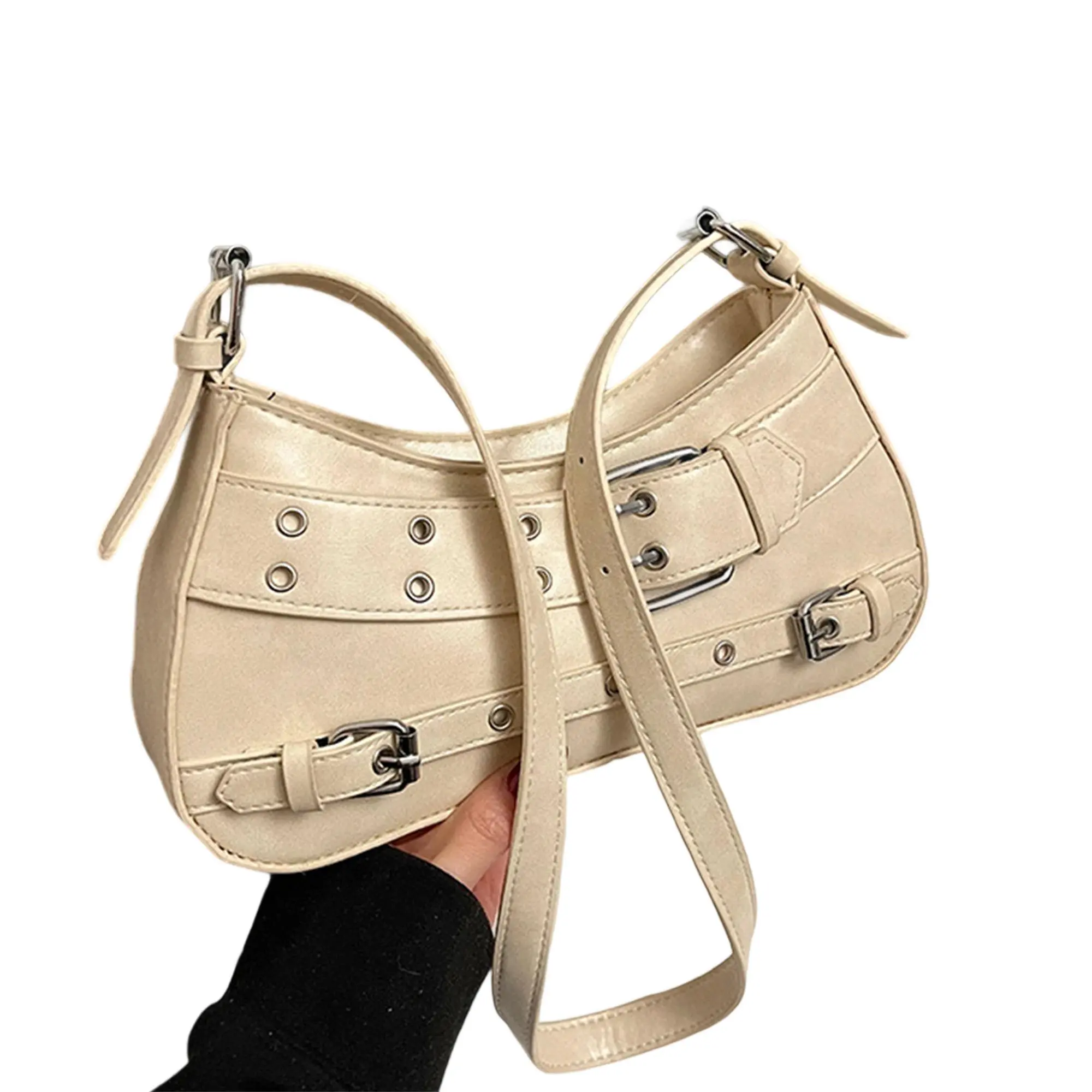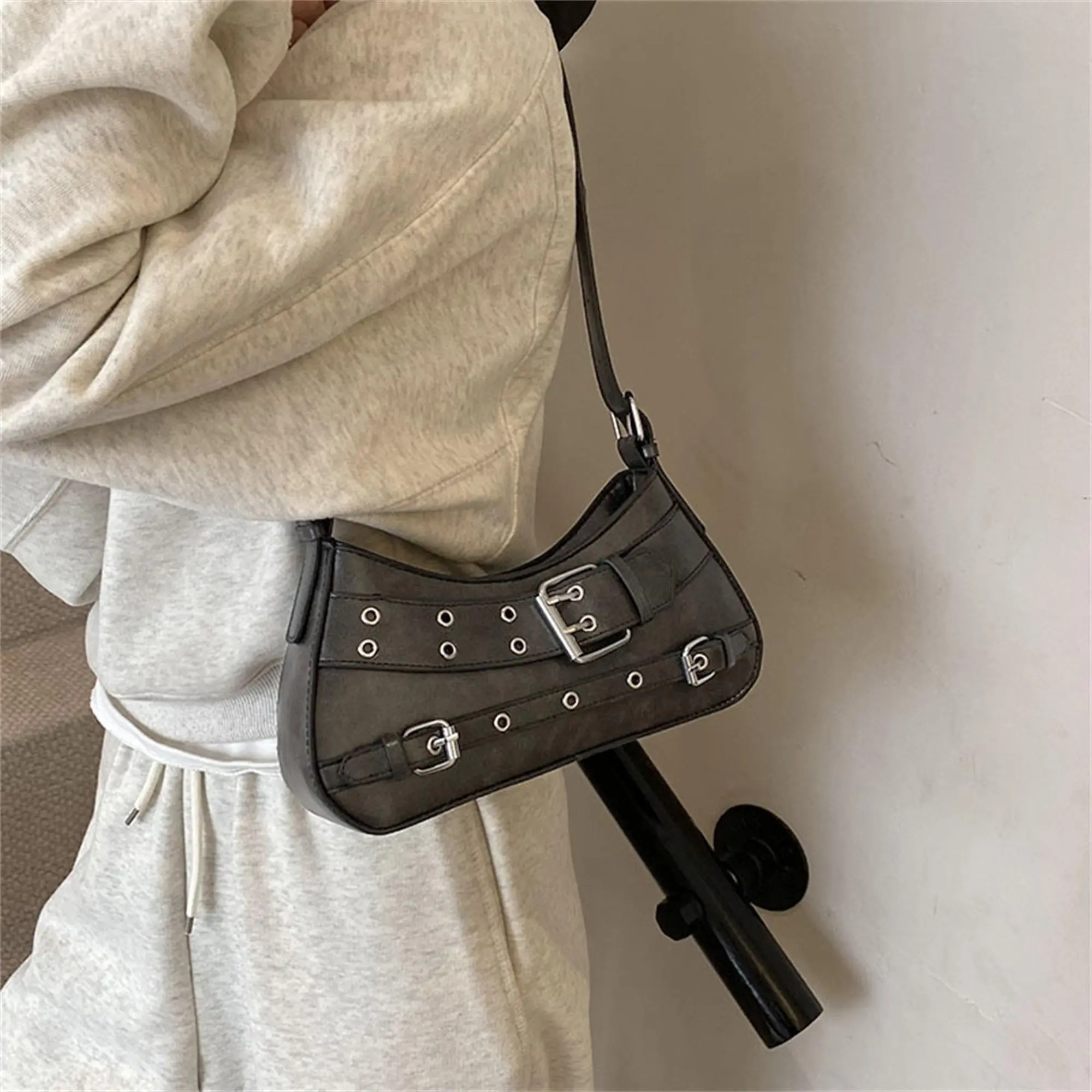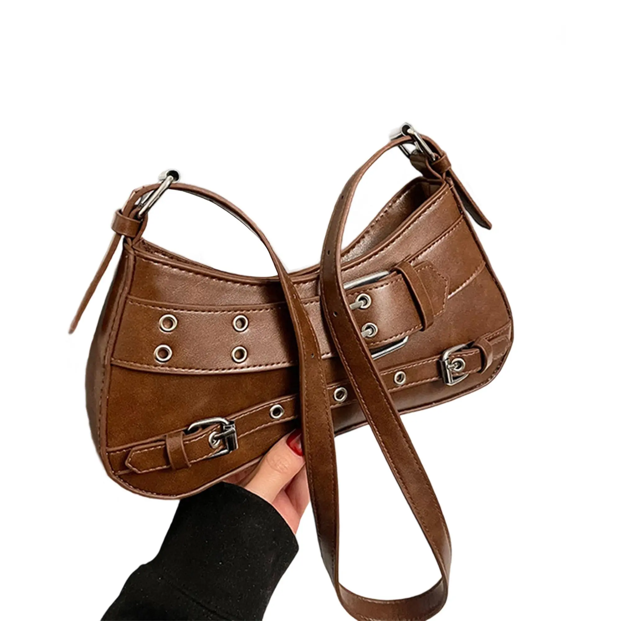 Stylish Leather Crossbody Bag with Adjustable Buckle Strap and Detachable Long Shoulder Strap for Women