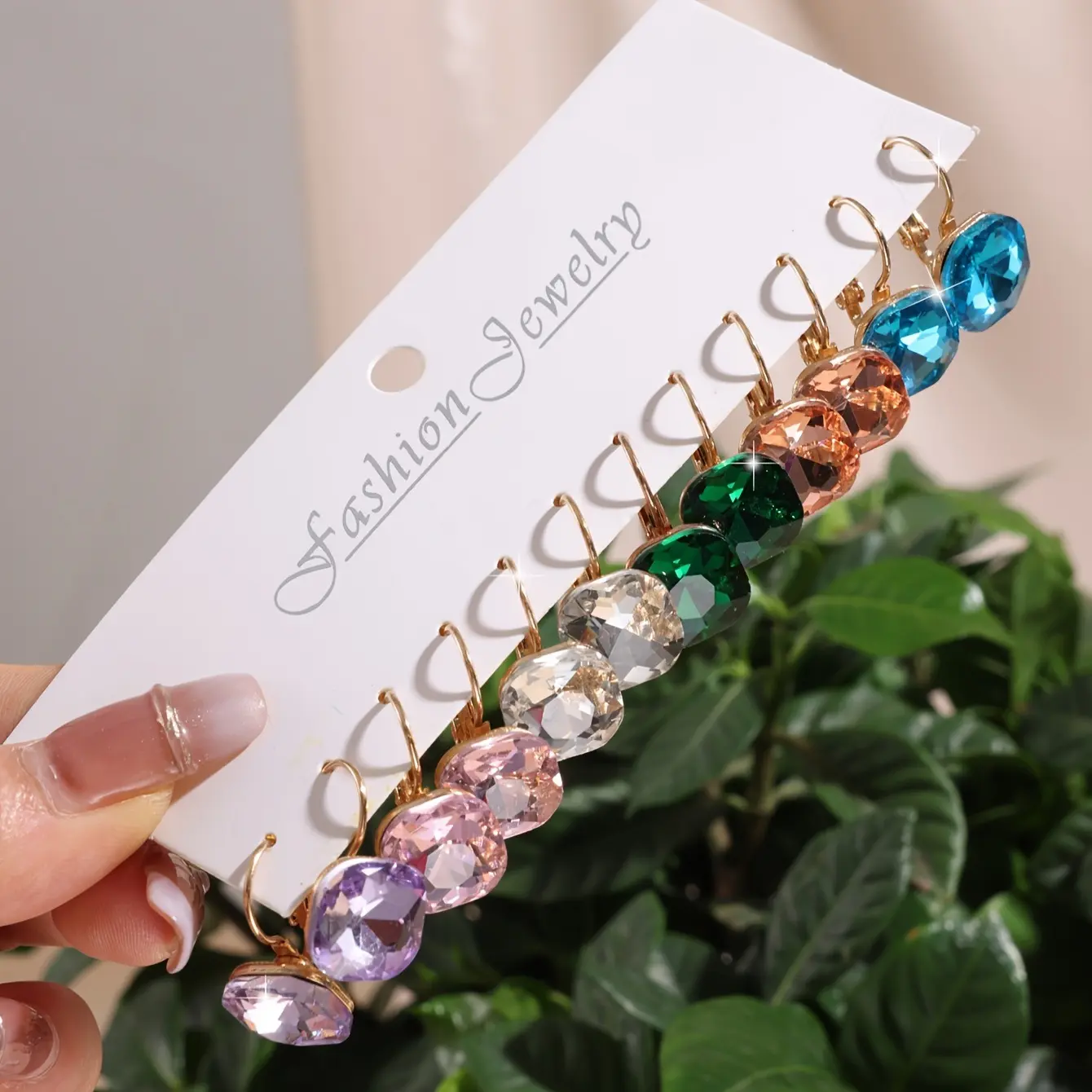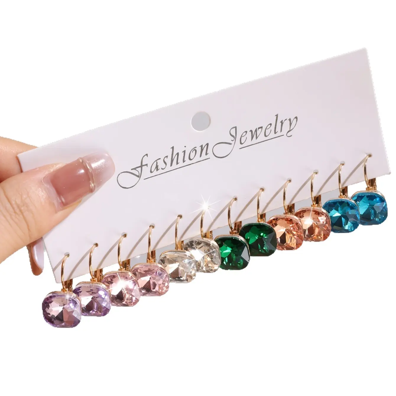 New jewelry square-shaped colorful diamond-studded earring set, light luxury and high-end feel, gorgeous geometric alloy earrings