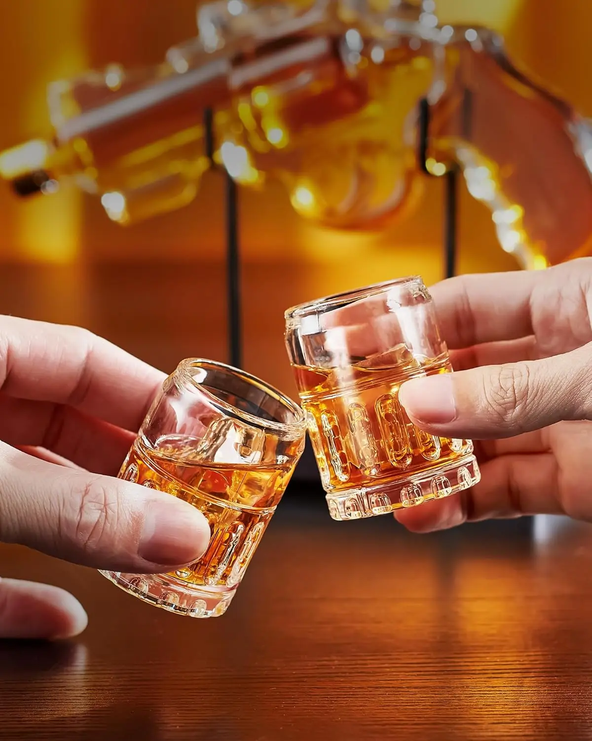 ·Handcrafted Revolver Design: This eye-catching whiskey decanter, shaped like a revolver, is meticulously handcrafted. It's the perfect addition for military enthusiasts and collectors, serving both as a functional item and a tribute to the armed forces and veterans
