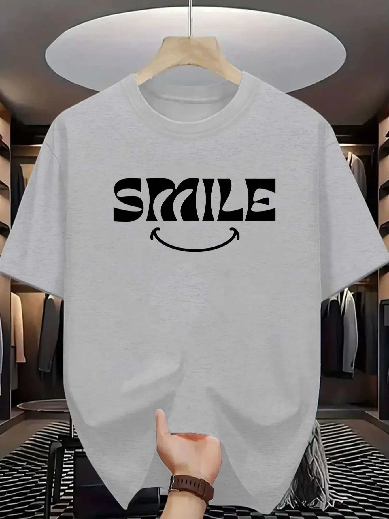 Men's Casual Smile Print T-Shirt, Short Sleeve Slim-Fit Top, Y2K Street Style, Trendy Graphic Tee for Daily Wear