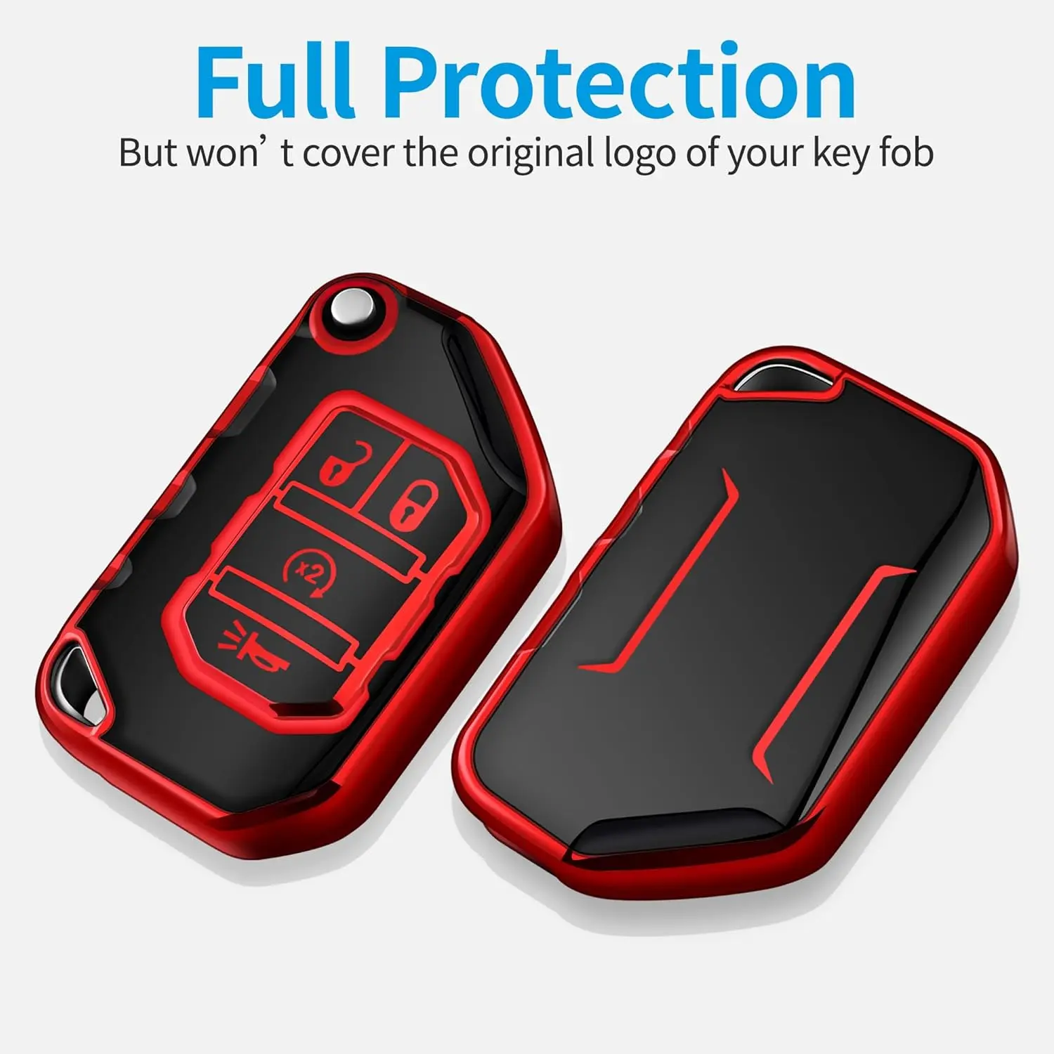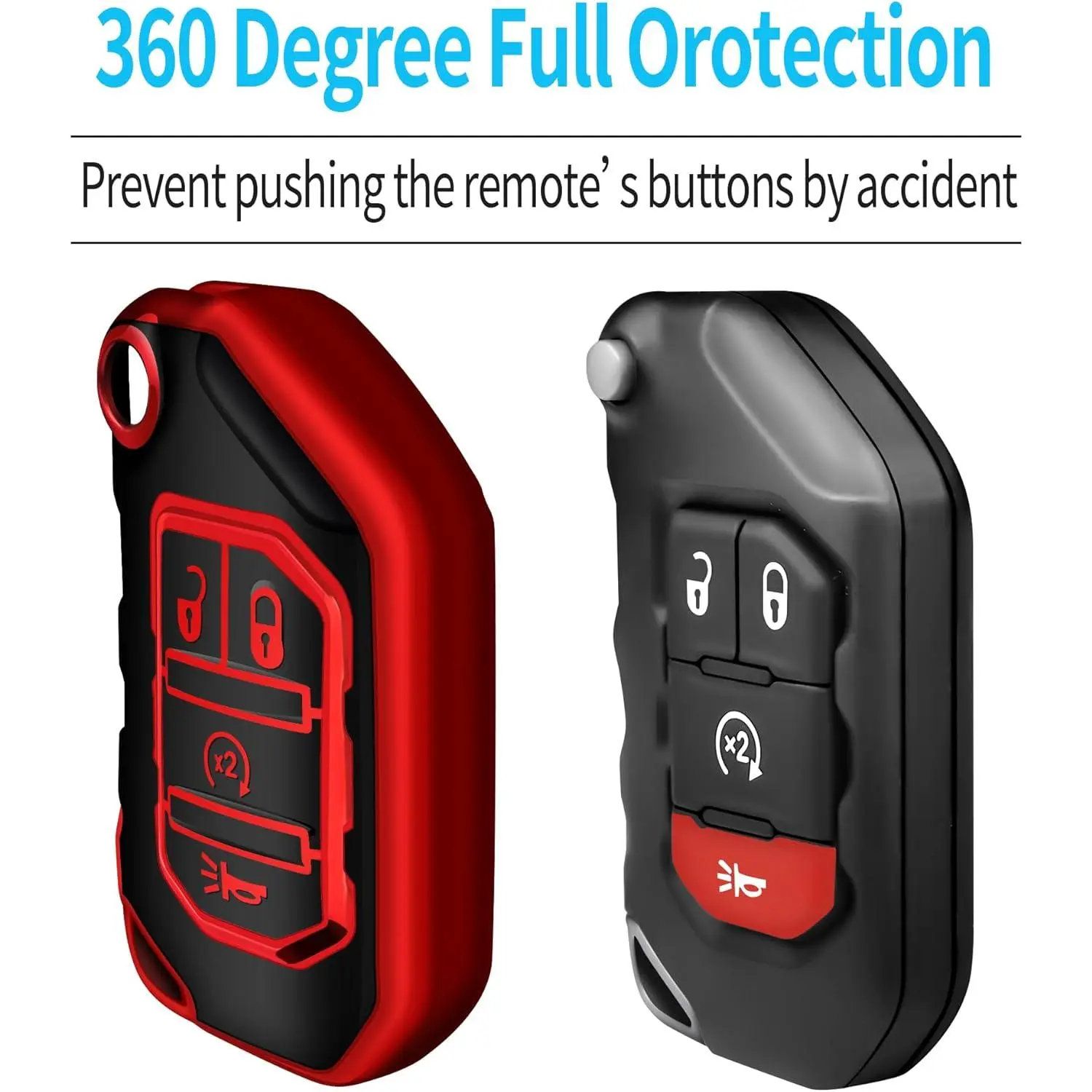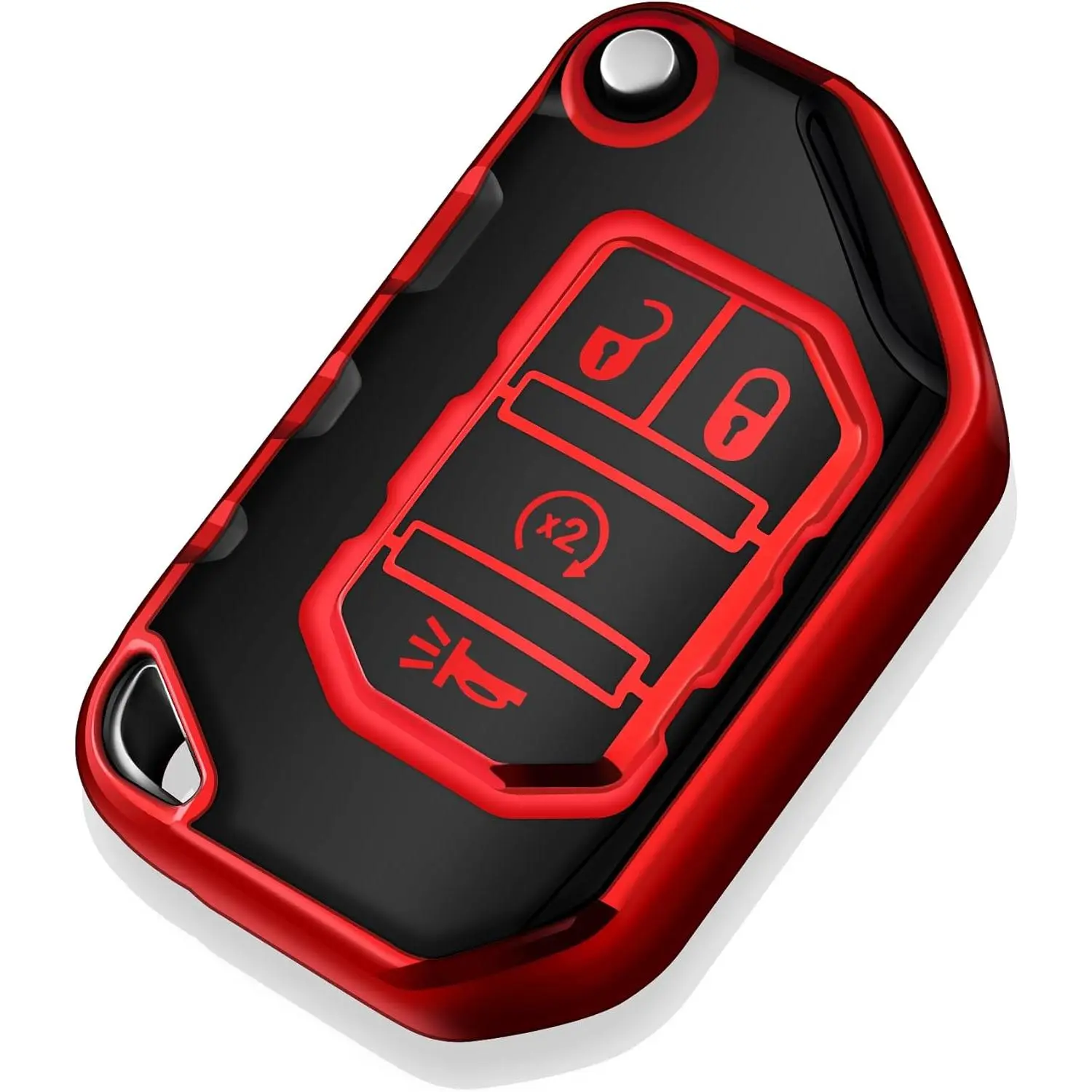 for Jeep Key Fob Cover Soft TPU Full Protection Key Shell Key Case Compatible with 2018-2025 Jeep Wrangler JL JLU Gladiator Flip 4 Button (Red)