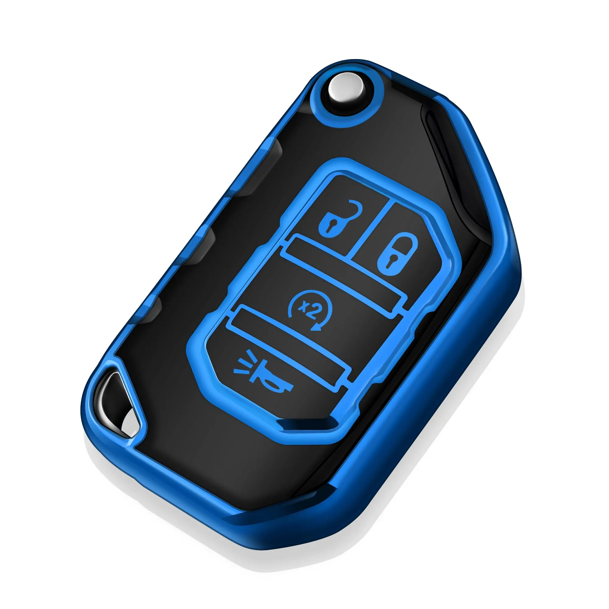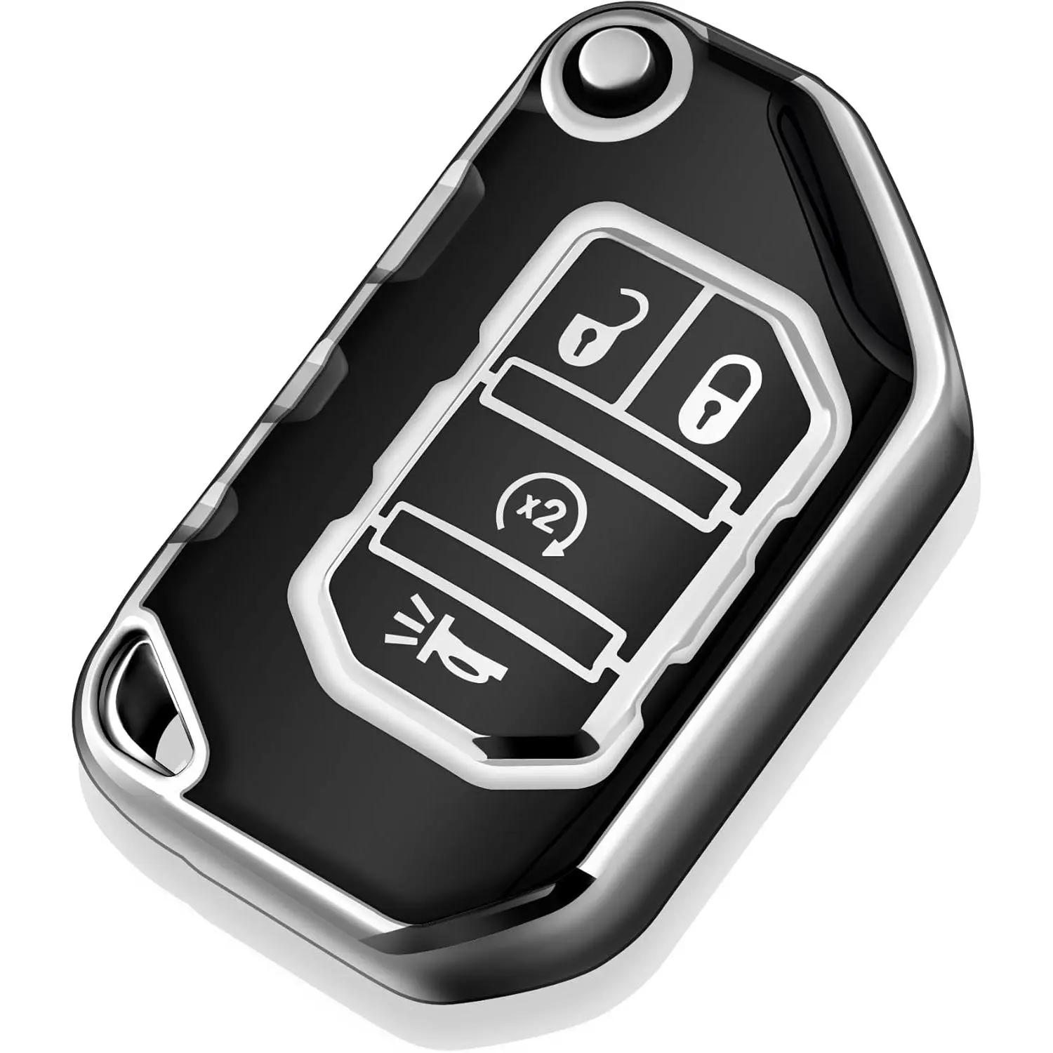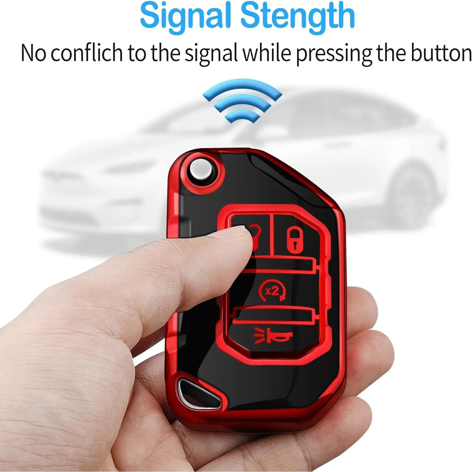 for Jeep Key Fob Cover Soft TPU Full Protection Key Shell Key Case Compatible with 2018-2025 Jeep Wrangler JL JLU Gladiator Flip 4 Button (Red)
