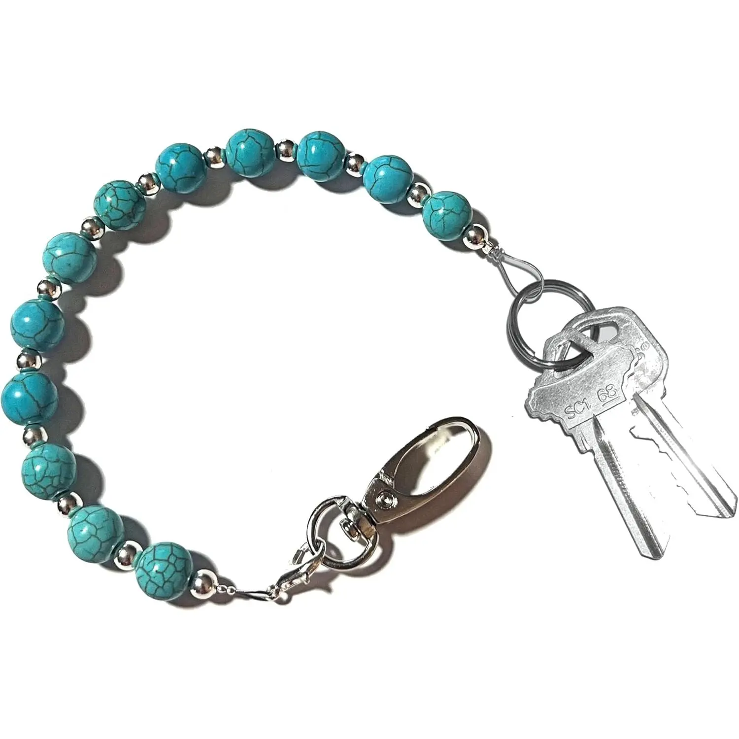 Key Keeper 12" Turquoise Women's Beaded Strap Chain Finder Organizer Wallet Purse Holder Anti-Lost Ring