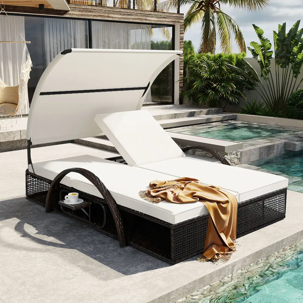 ·[Dual Lounger Design]:Spacious double sun lounger perfect for poolside, patio, garden, or backyard relaxation.