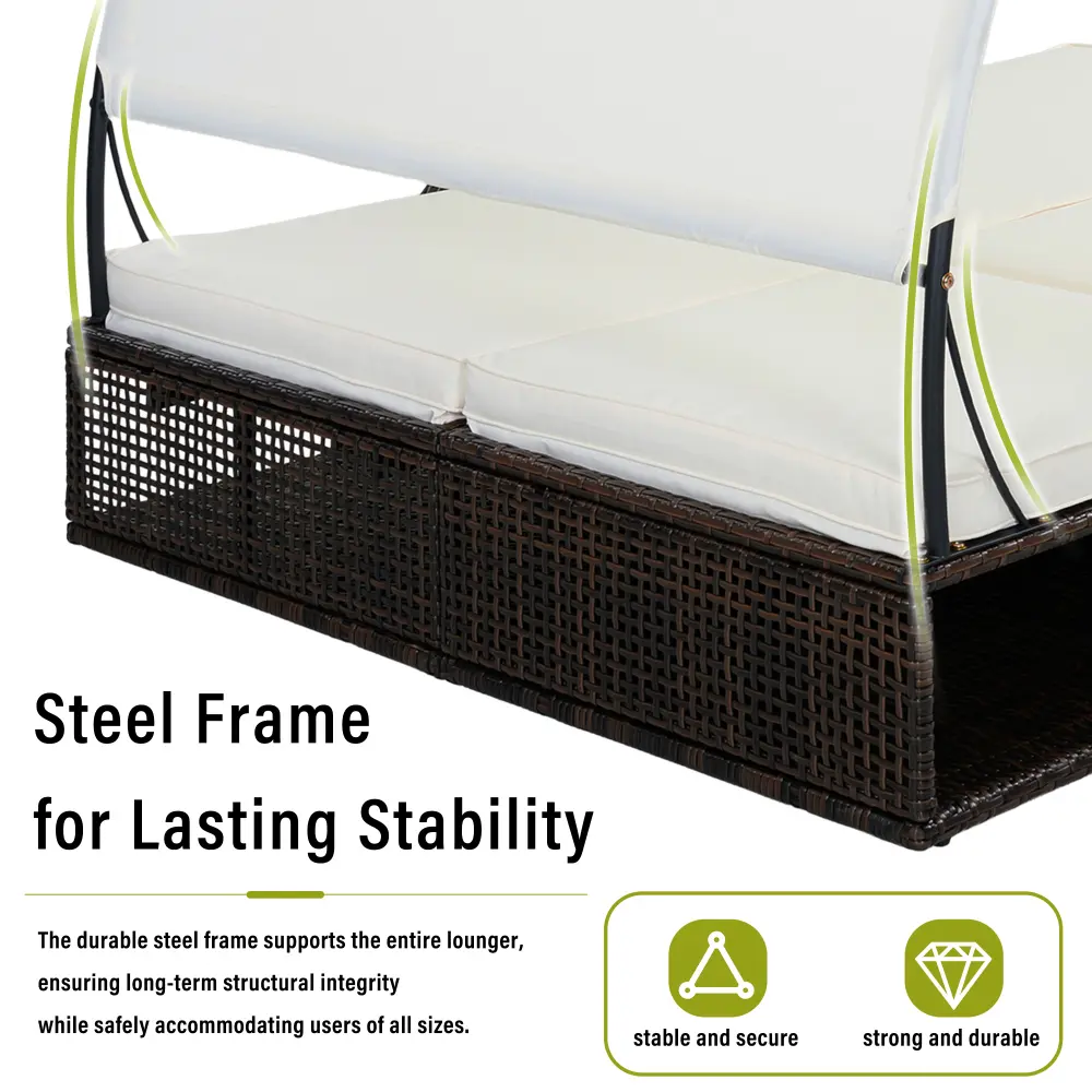 ·[Strong Steel Frame Construction]:The sturdy steel frame provides long-lasting durability and superior stability while supporting the lightweight HDPE wicker weave for a reliable outdoor daybed.