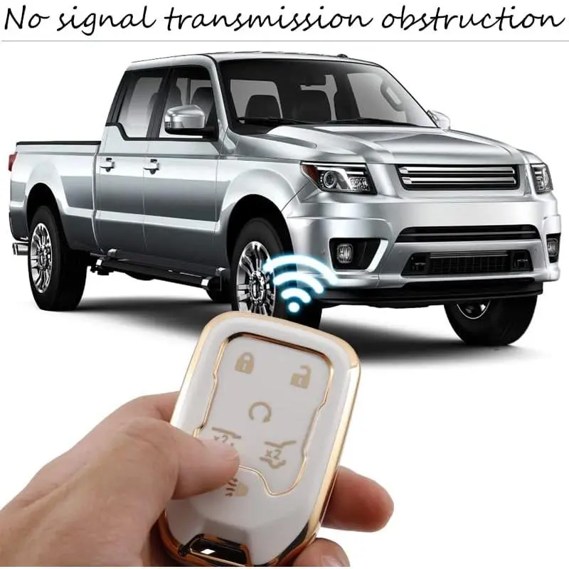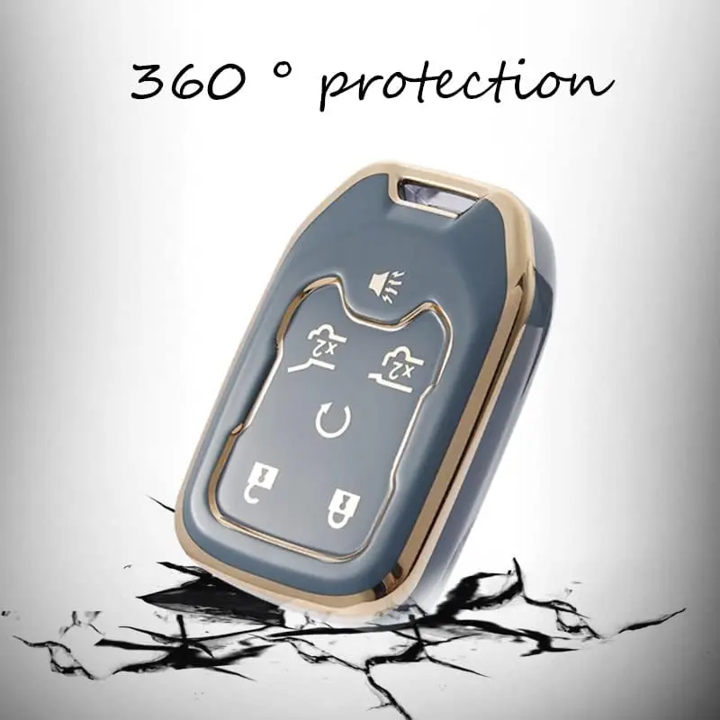Key Fob Cover Compatible with Chevy Chevrolet Suburban Tahoe GMC Terrain Yukon Yukon XL Smart 6 Buttons TPU Remote Keyless Key Fob Case Protection Shell Accessories Blue with Metal Keychain