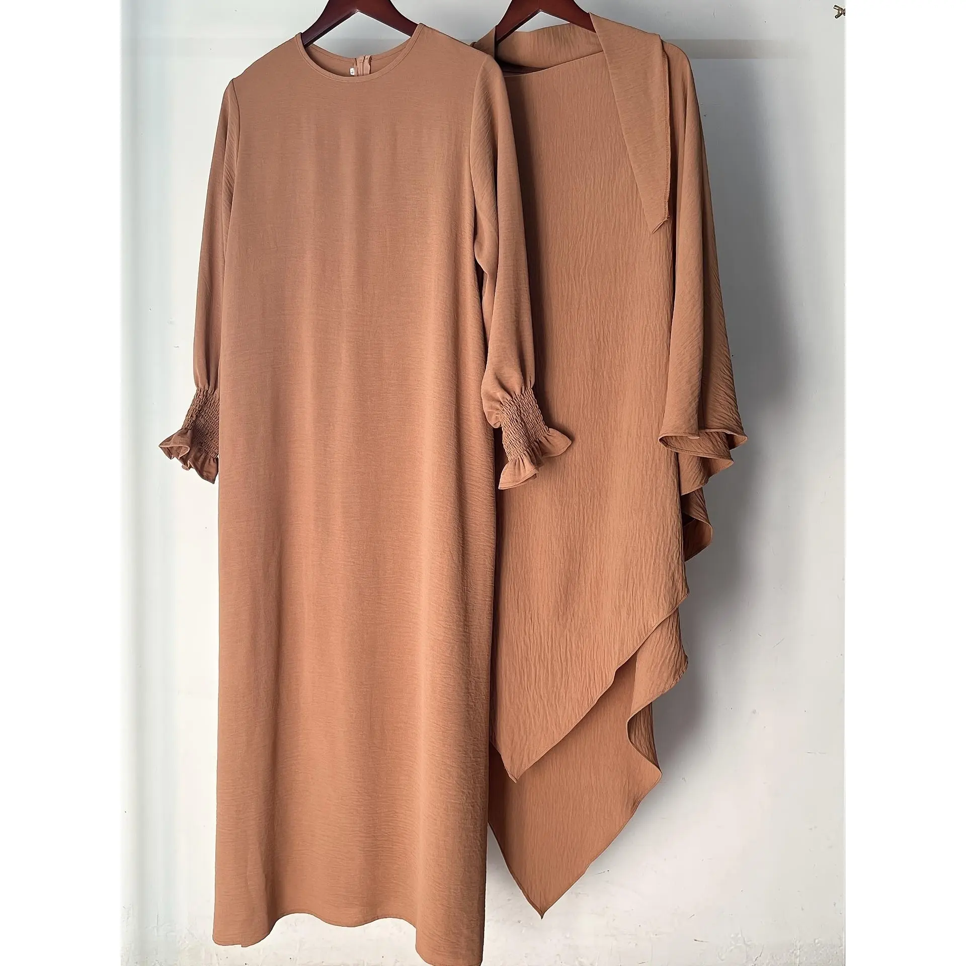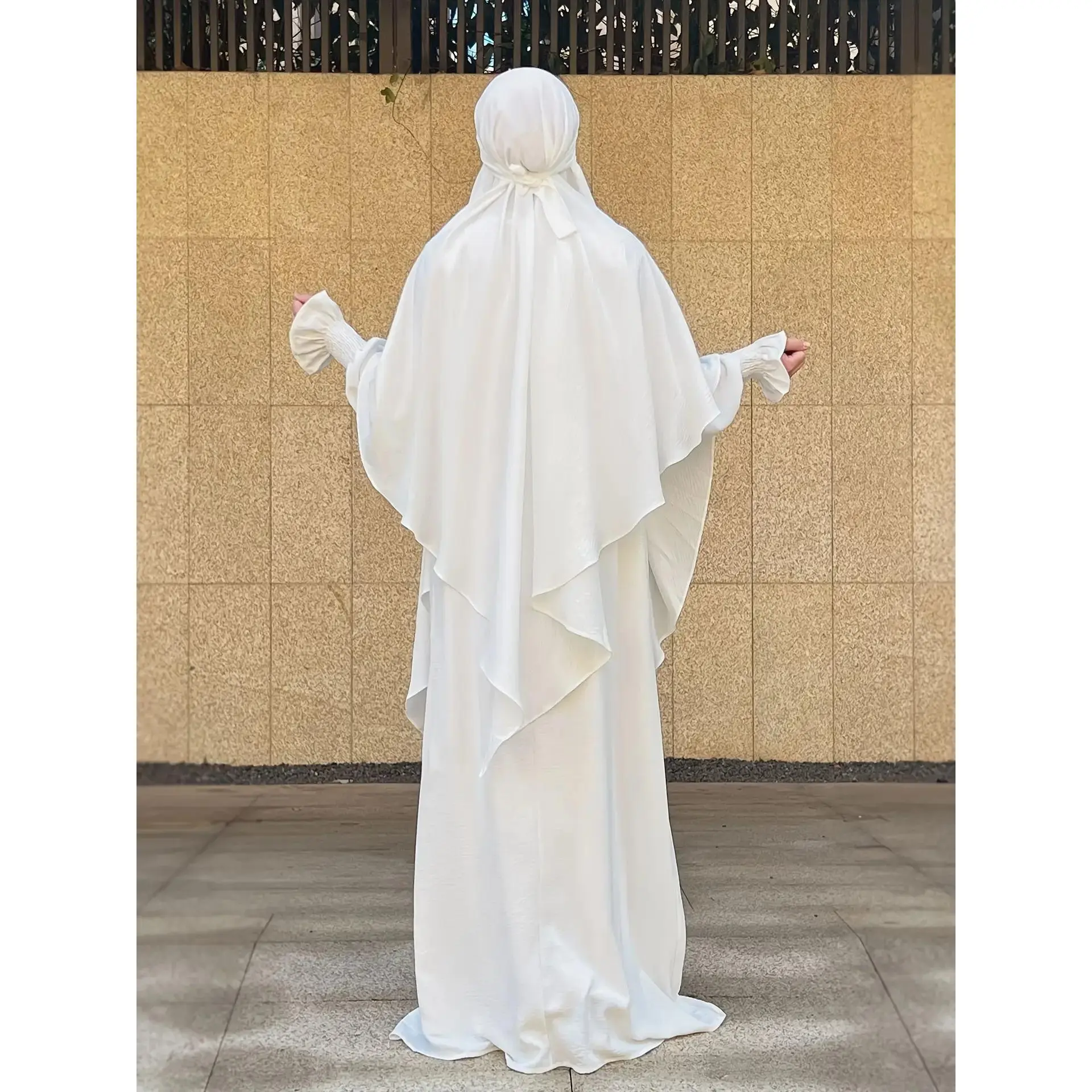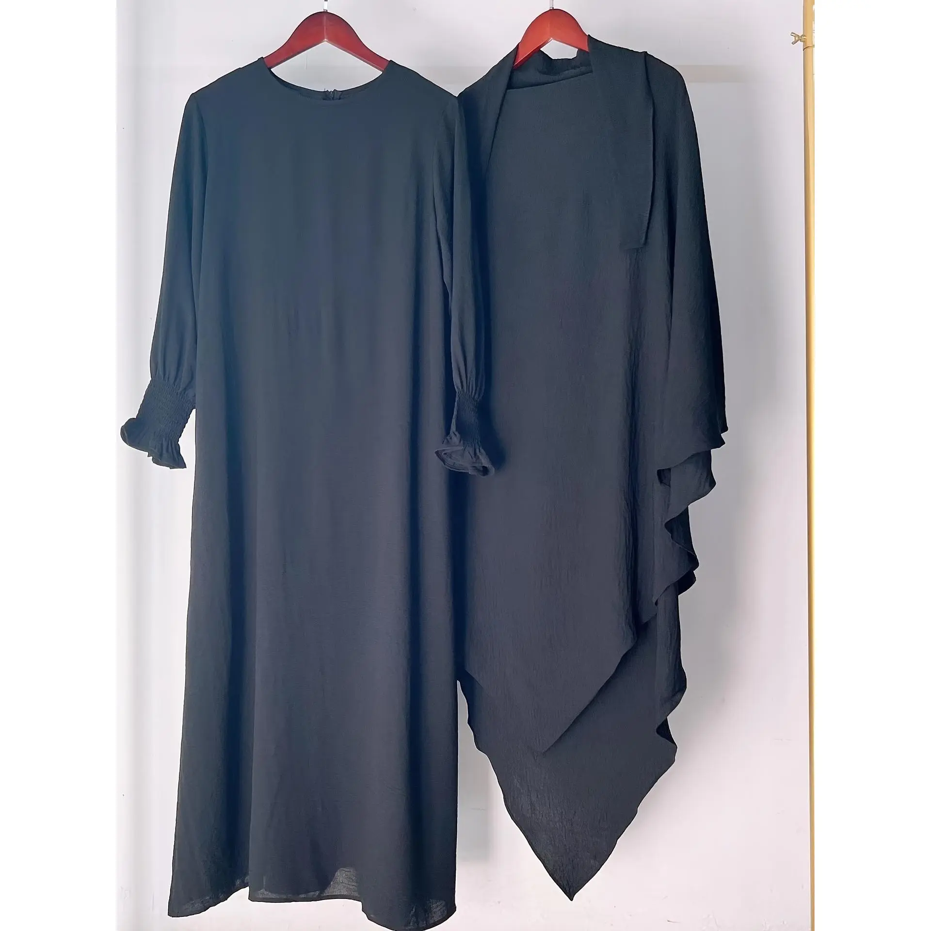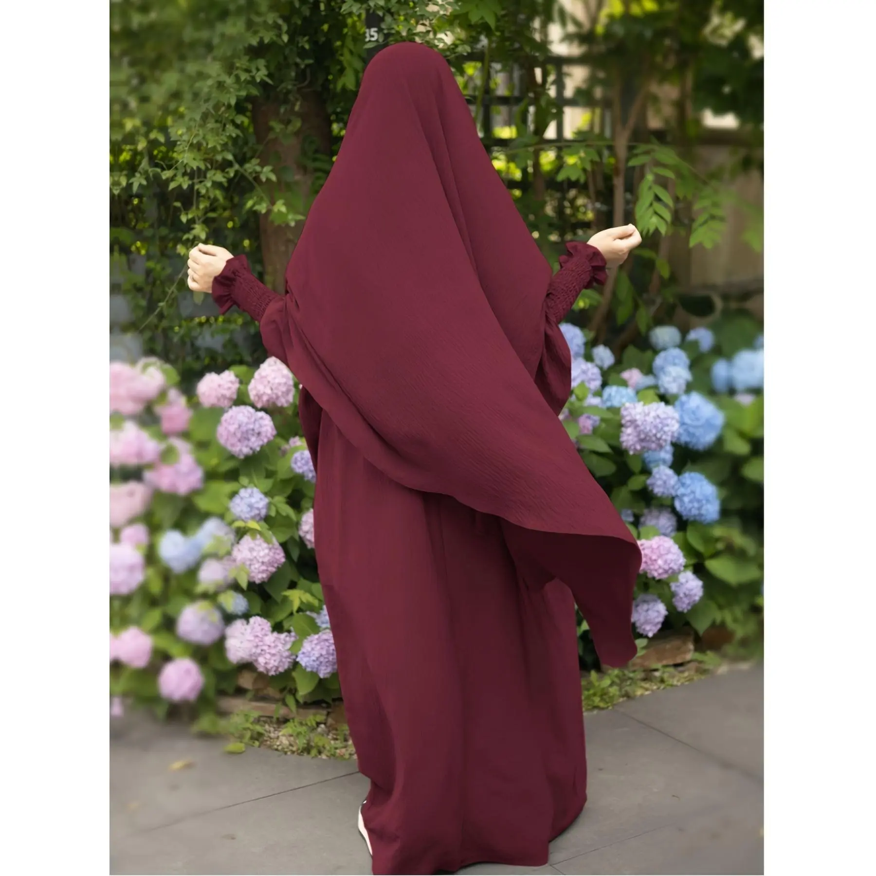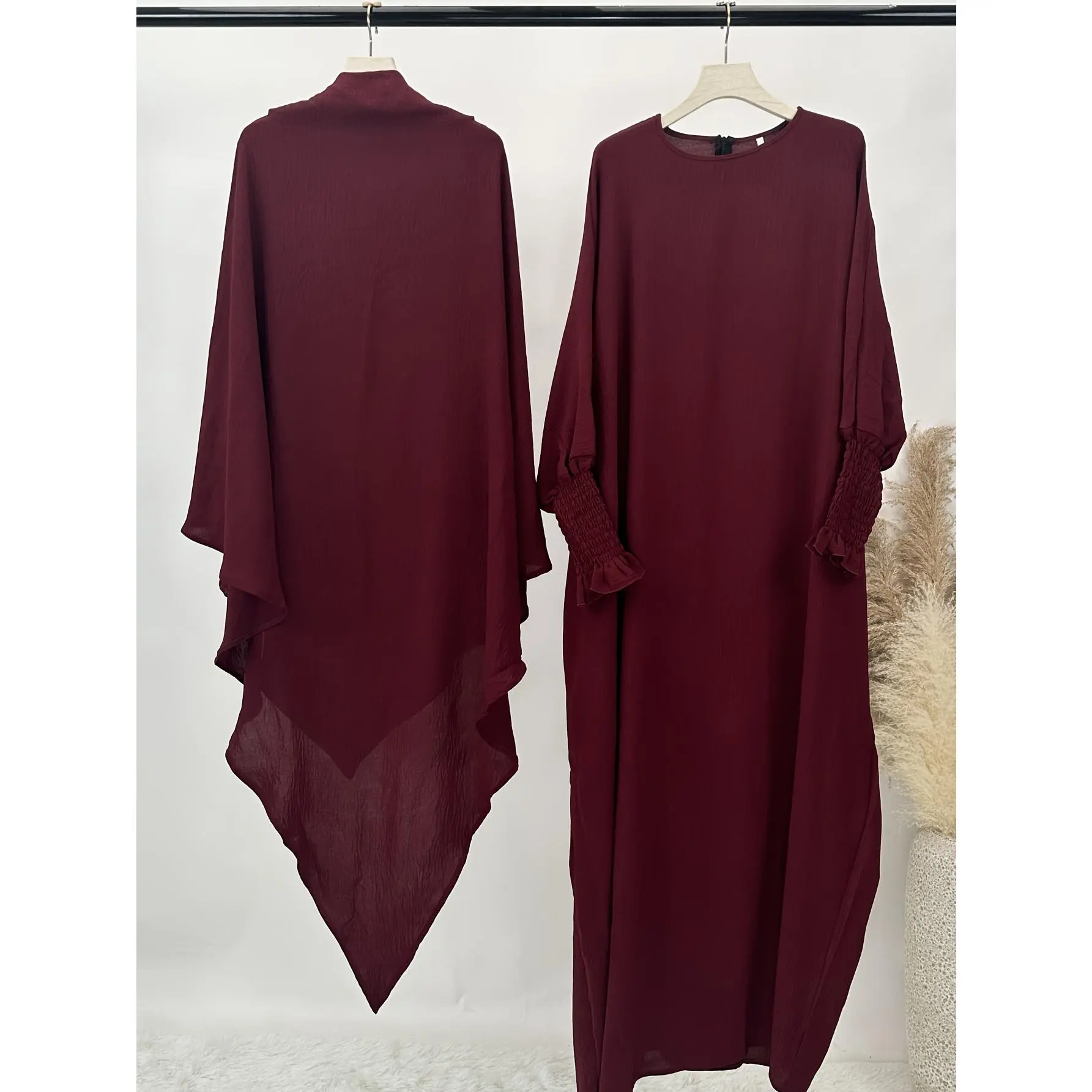 Plus Size - Plus Size - Plus Size, Two-Piece Khimar And Abaya Prayer Jilbab Suit: Fashionable& Elegant Vacation Set - Pure Color Easy Single-Layer Headscarf+ Light, Breathably Comfort Horn Sleeve Loose Dress for Women