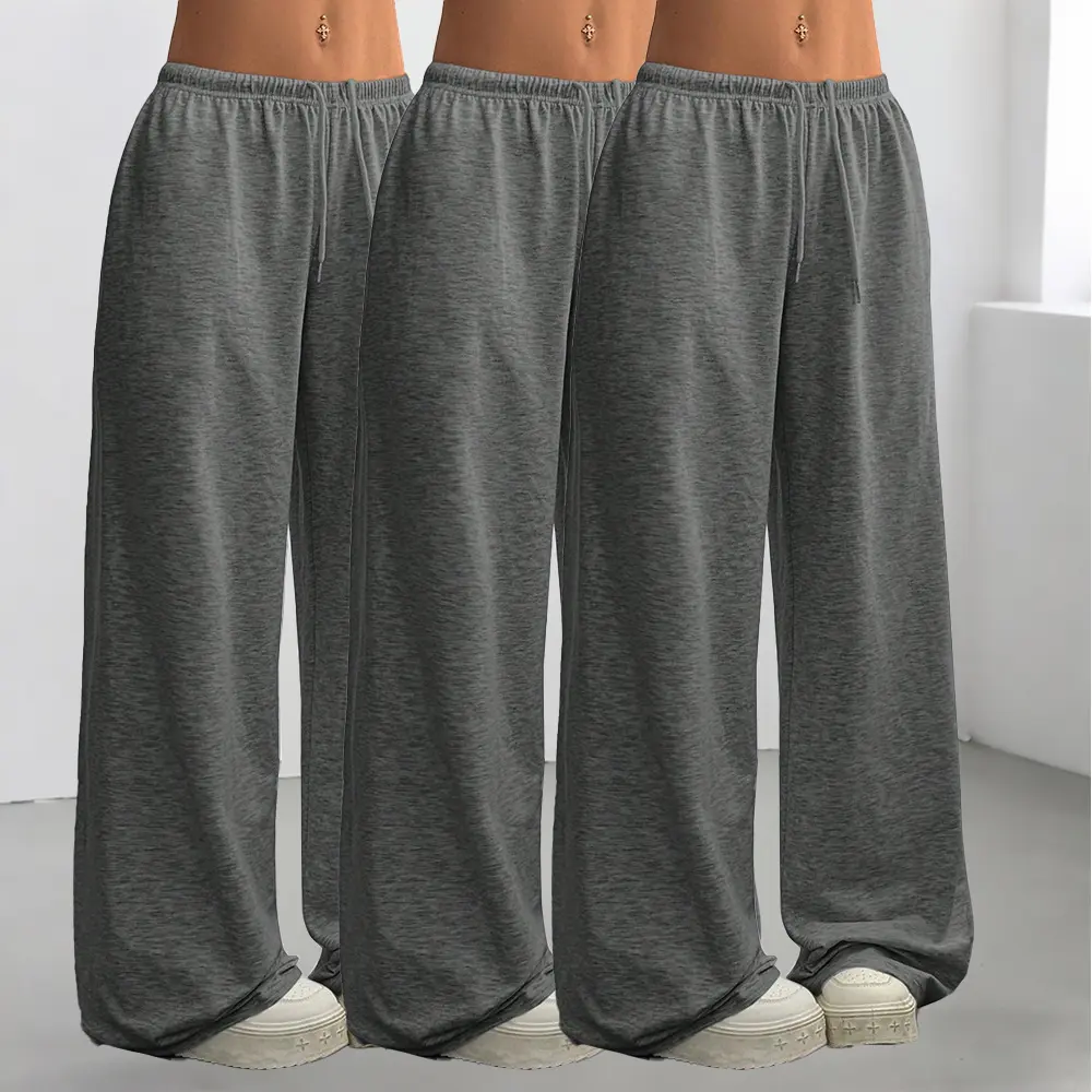 [Solid Color] 3 Pcs 3 Pack Oversized Sports Pants Loose Lounge Pants Black & Gray Pants Streetwear Pants Women Outfits Casual Pants Daily Wear Pants