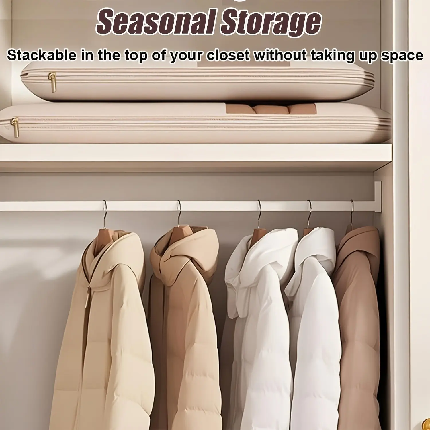 Compression Storage Bags in Pink And Beige, Available in Sizes 90, 110, And 130 Cm, Designed to Save 40% Space. Perfect for Vacuum Sealing Down Coats And Winter Clothing