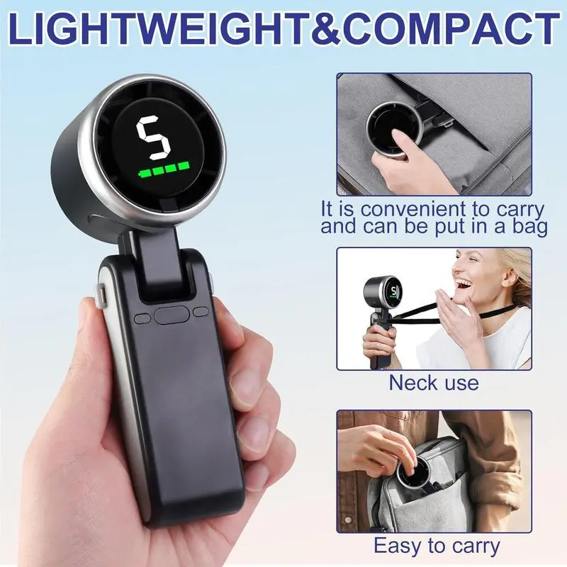 USB-C Charging Handheld High Speed Fan, 5-speed Wind Speed Fan, Foldable & Hanging Neck Fan Suitable for Family, Travel, and School, Handheld Cooling Fan, Portable Multifunctional Fan