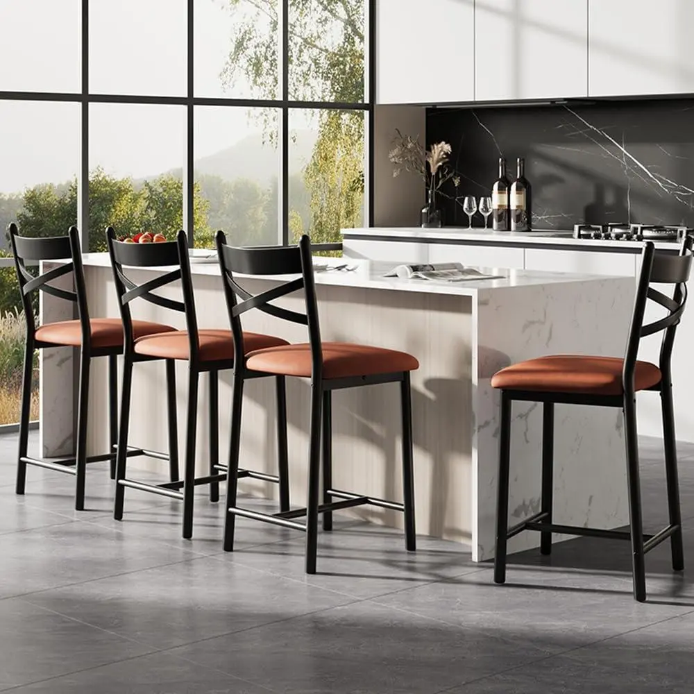 【Ergonomic Back & Footrest】Each bar chair has a distinctive X-shaped back that offers stylish, ergonomic support, along with a built-in footrest for comfortable leg positioning. This design adds visual interest while keeping you well supported for everyday counter height seating.