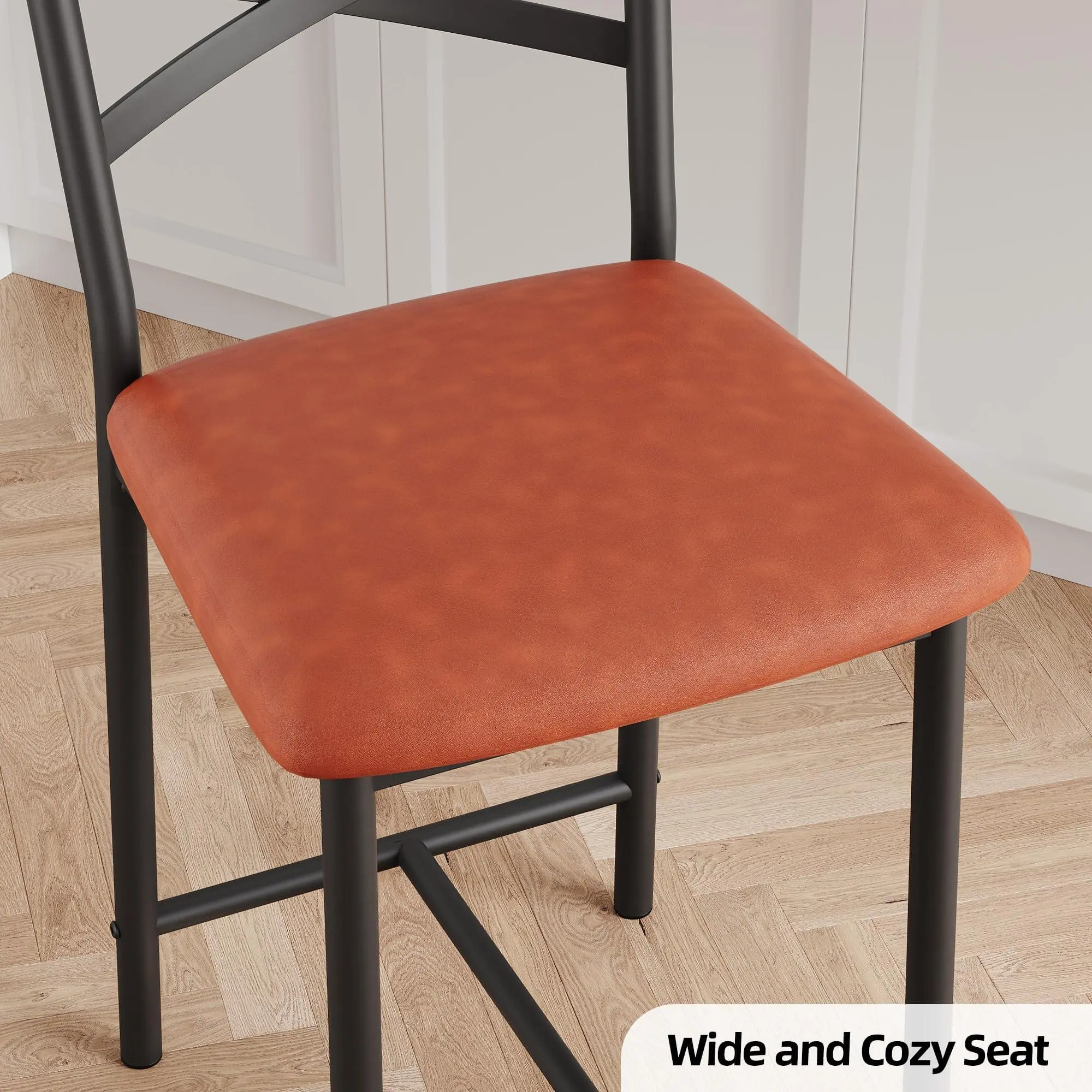 【Easy-to-Clean PU Leather】The waterproof PU leather seat lets you quickly wipe away spills, stains, or dust, while the scratch-resistant metal base helps resist daily wear. These low-maintenance restaurant chairs stay looking neat with minimal effort, even in busy family or entertaining spaces.