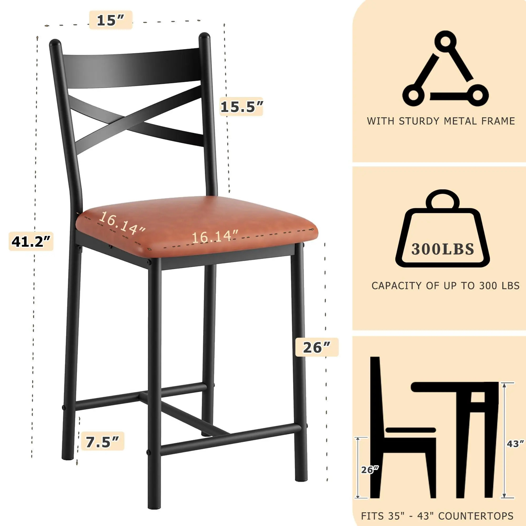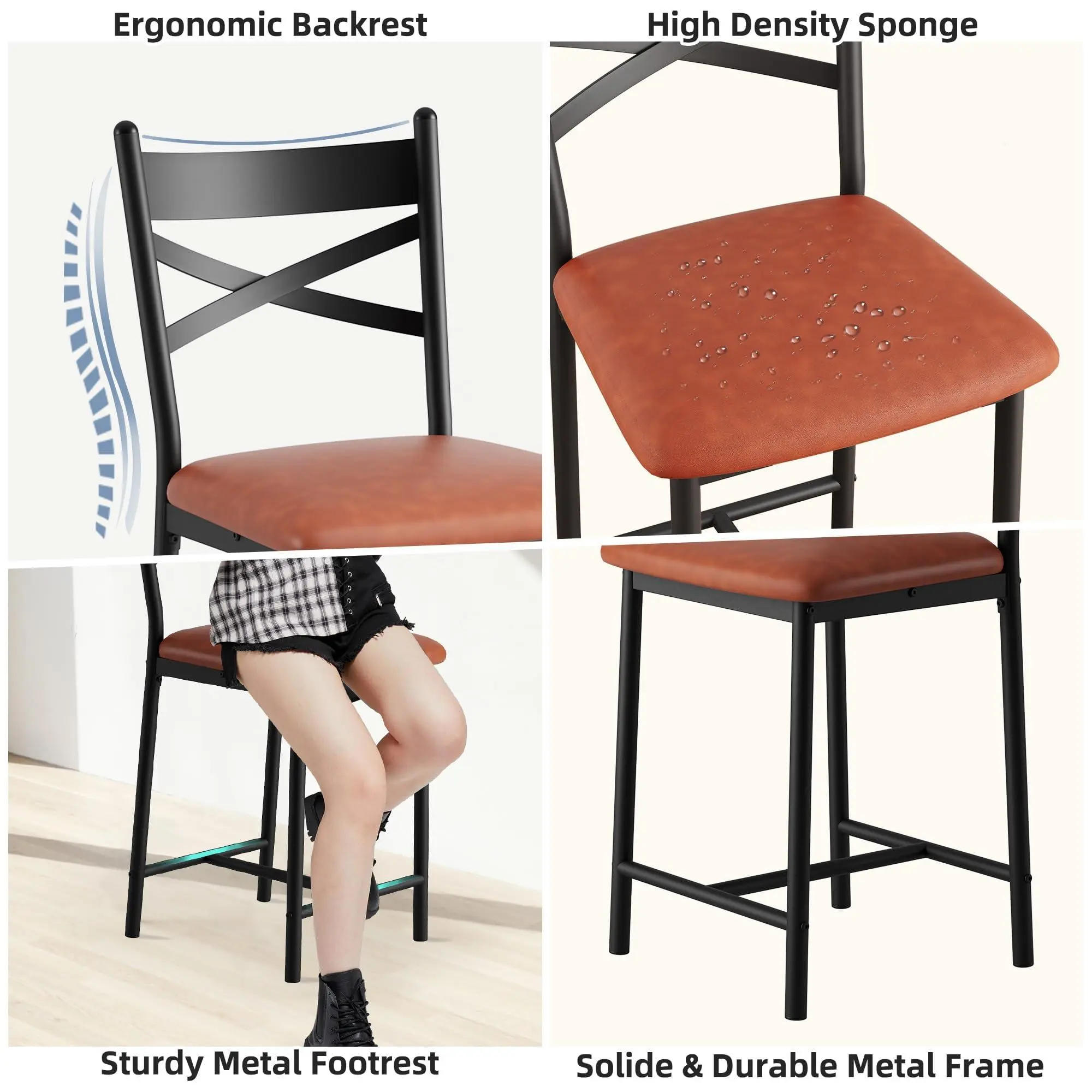【Sturdy Metal Frame】Built with a reinforced metal frame, these counter height dining chairs are designed for stability and strength. They are suitable for both home and light commercial use in kitchens, dining rooms, or cafés.