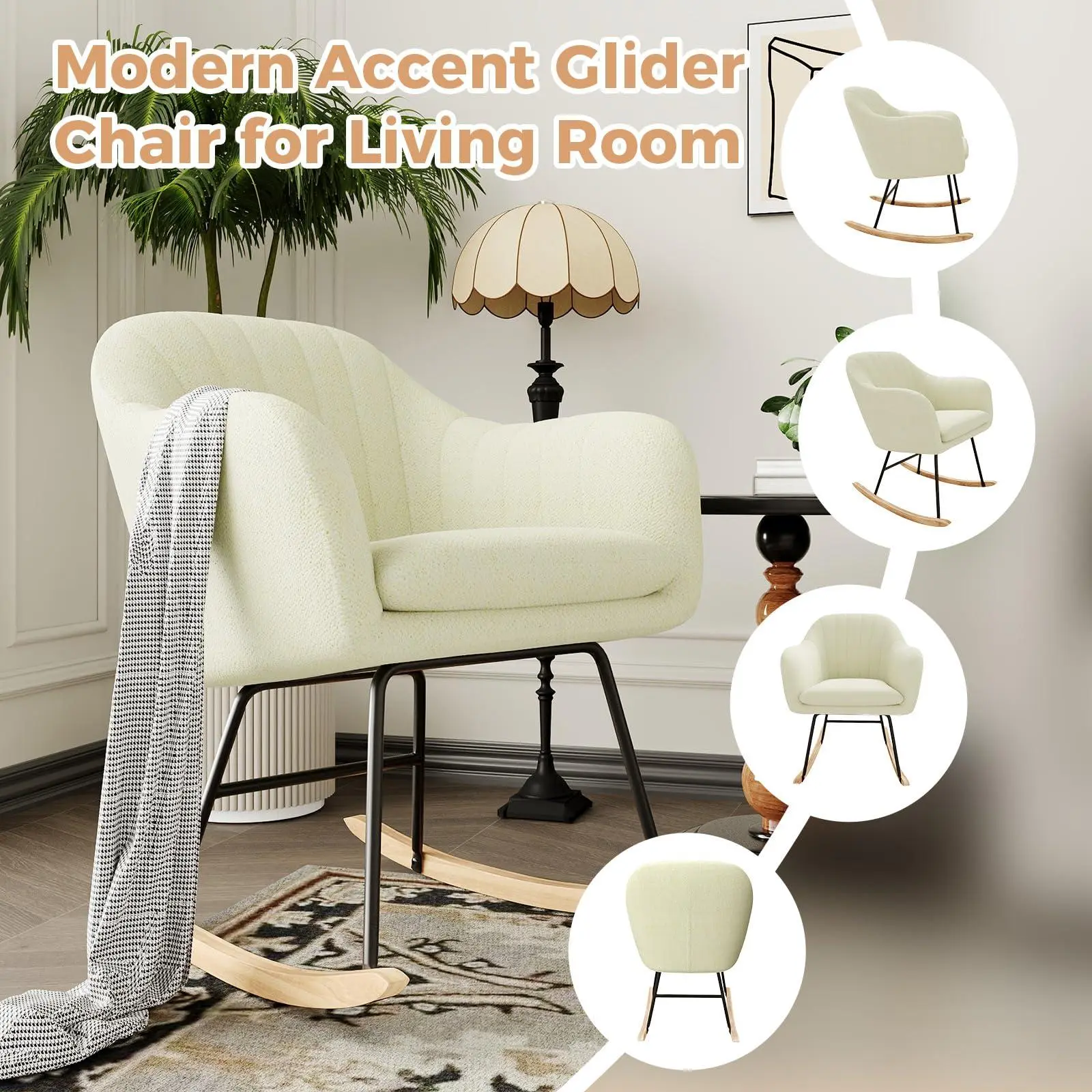 Sturdy & Durable Frame: The glider rocking chair is made of metal and solid wood, which ensures great stability and a high load capacity of 350 LBS. Curved leg pads on the legs protect your floor from scratches.