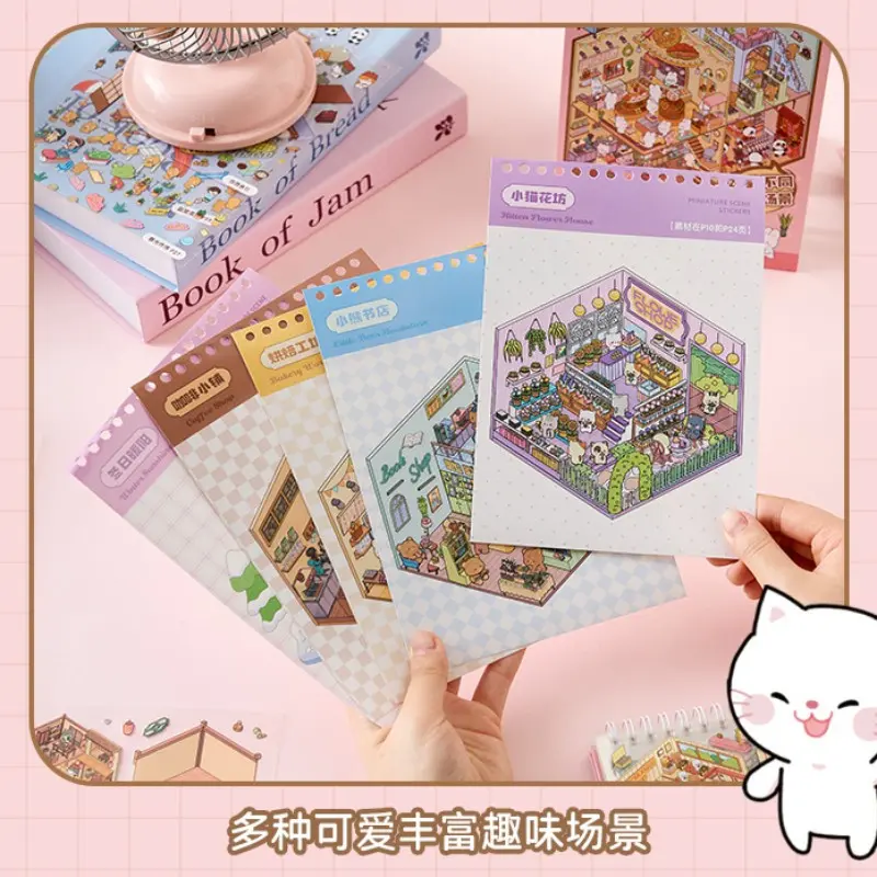 10 Scenes Miniature Diorama Sticker Book Craft Supplies for Scrapbooking Journaling Birthday Gift for Girls Friends