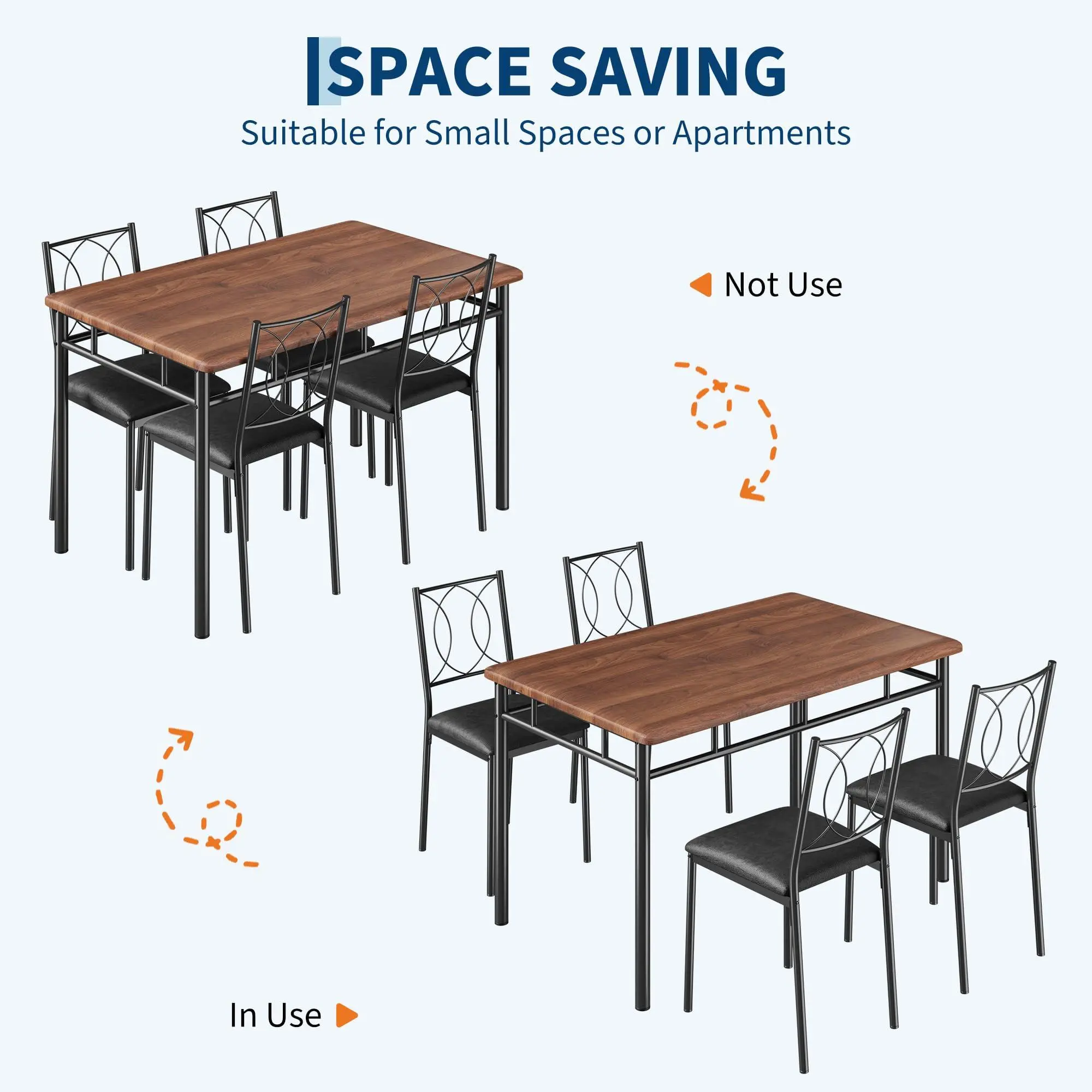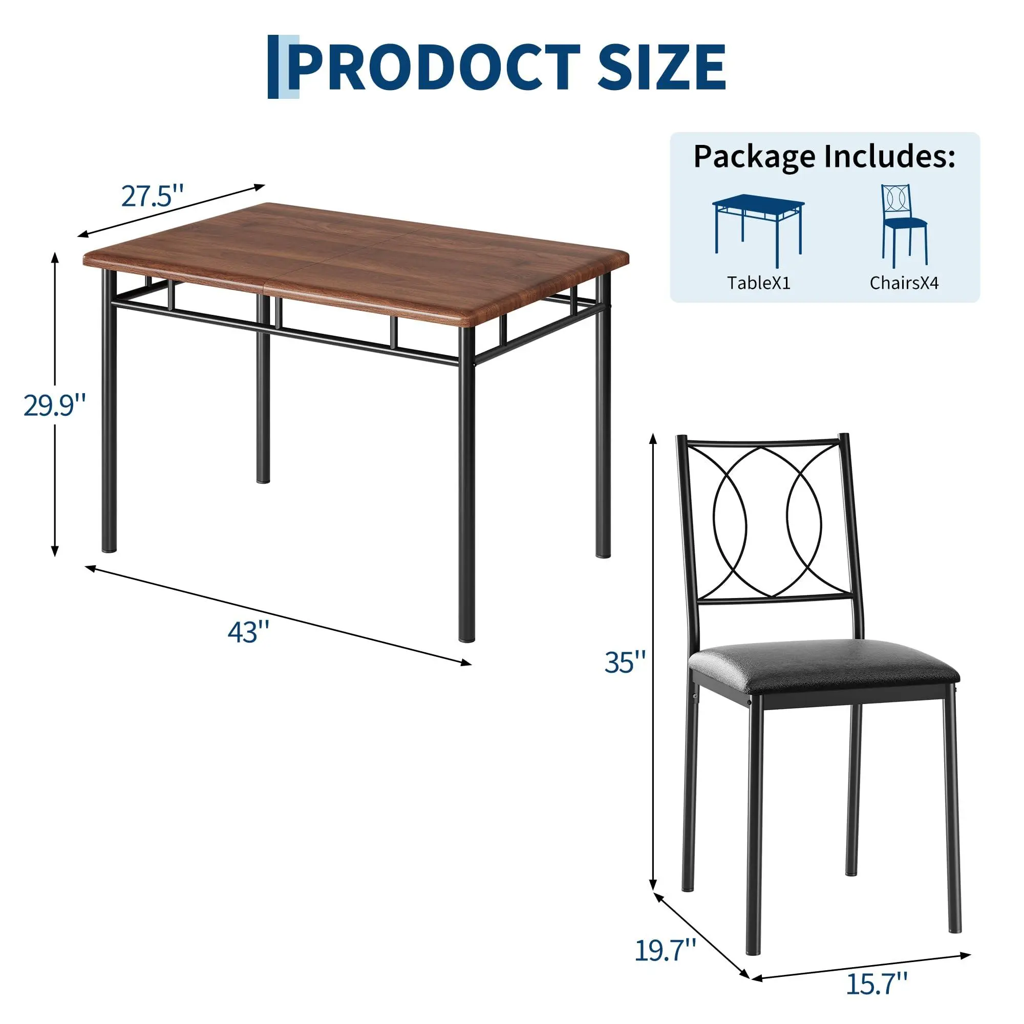 1. Compact 5-Piece Dining Set for Small Spaces: Includes a space-saving 43.3"L x 27.5"W table—perfect for small kitchens, apartments, or cozy breakfast nooks where every inch counts.