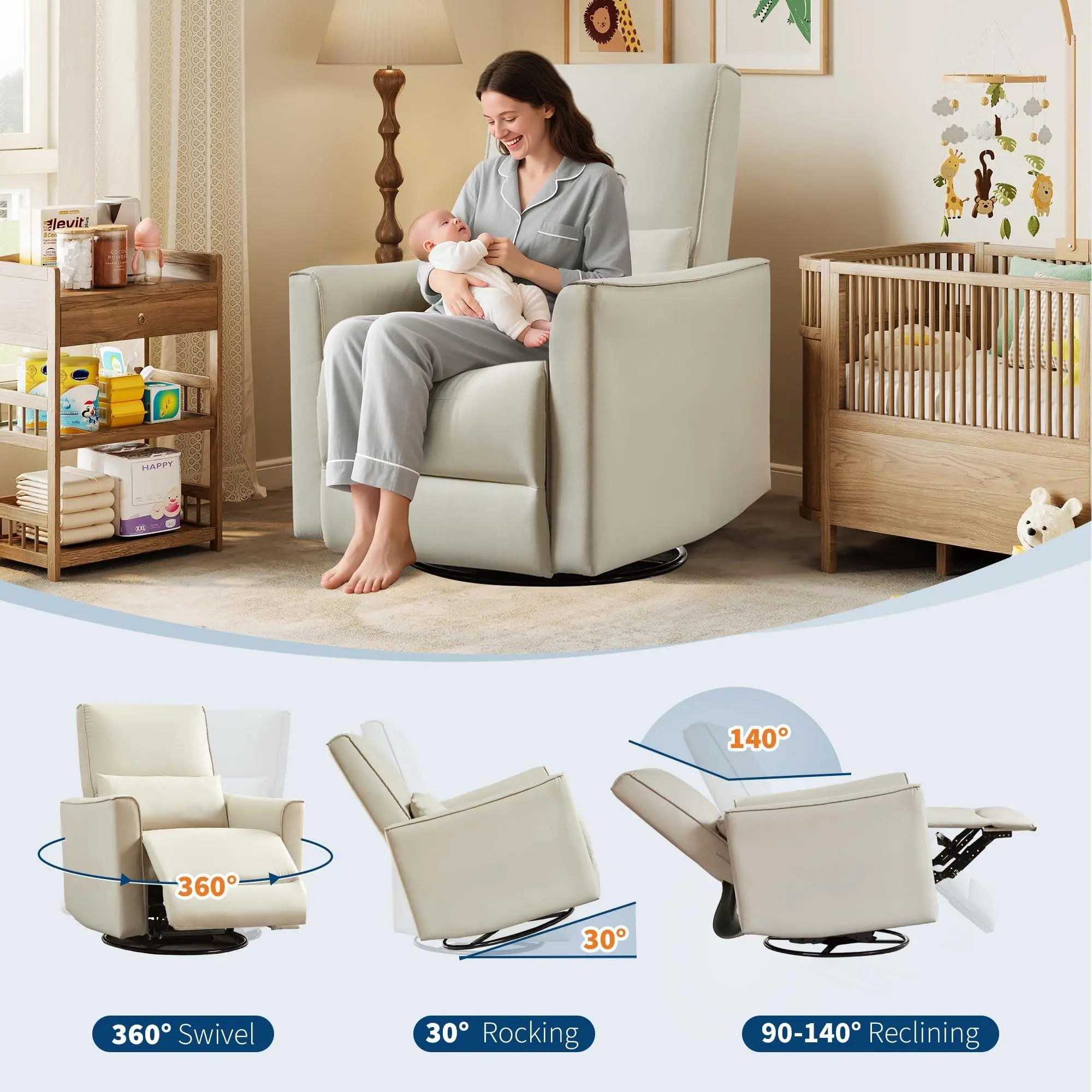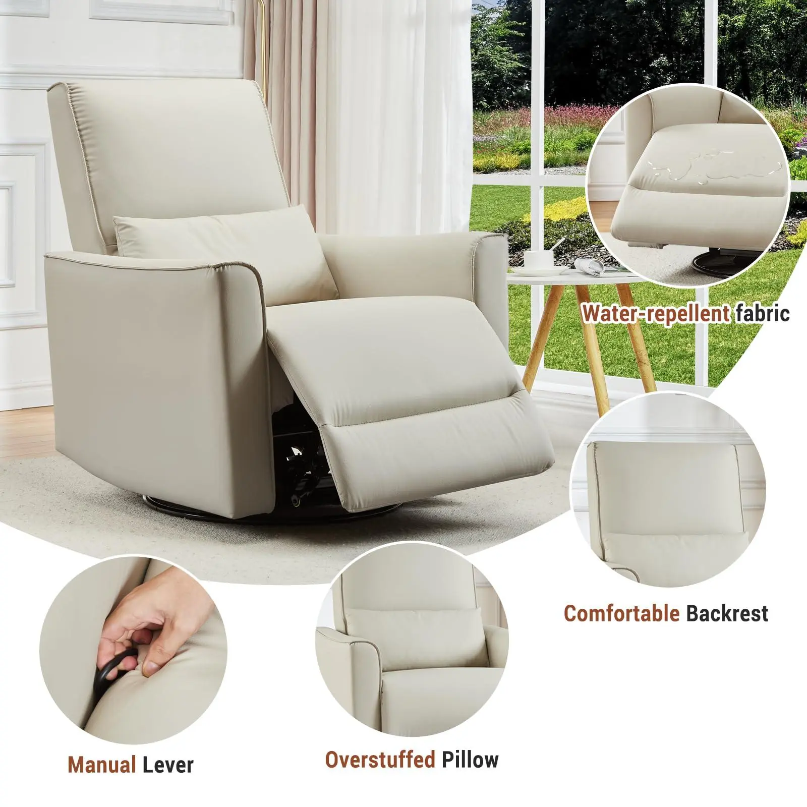 【Smooth Swivel & Gentle Rocking Motion】Enjoy full relaxation with a 360° smooth swivel and 30° gentle rocking—perfect for reading, nursing, or unwinding. The manual 90°-150° recline lets you stretch out comfortably, while the quiet mechanism ensures a peaceful experience at home.