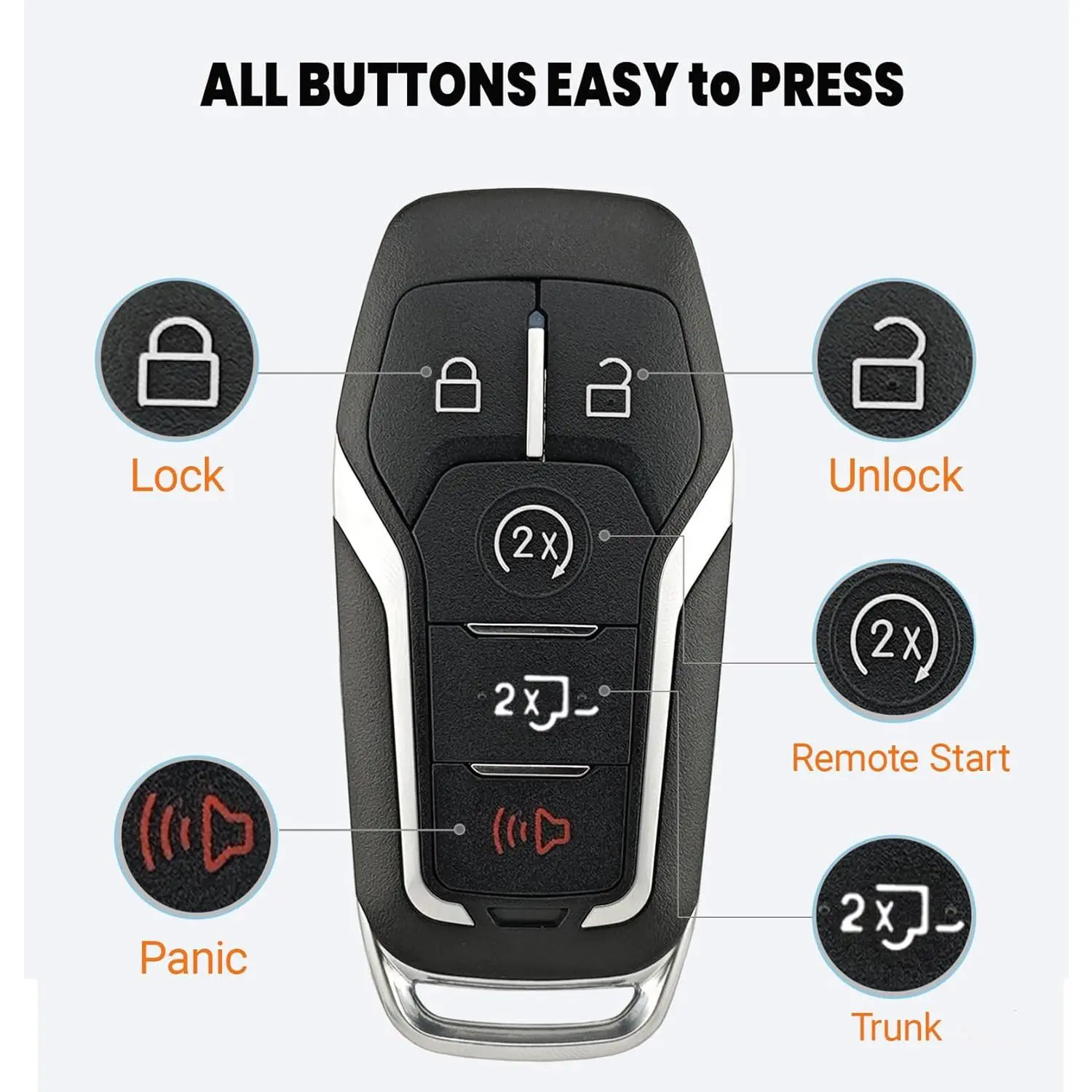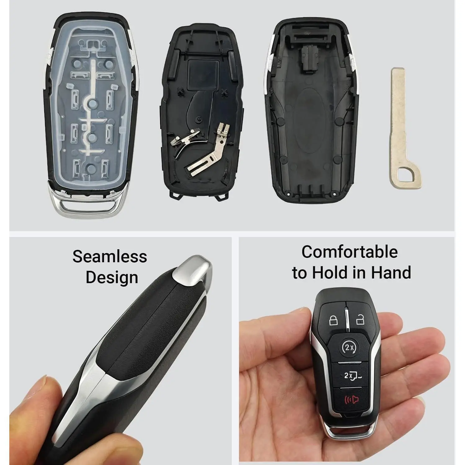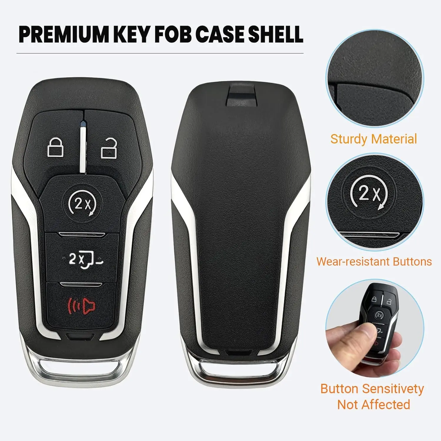 Key Fob Shell Case Replacement Fits for Ford F150 F250 2015 2016 2017 FCC ID:M3N-A2C31243300 P/N:164-R8117 Keyless Entry Remote Control 5 Button Pad Cover