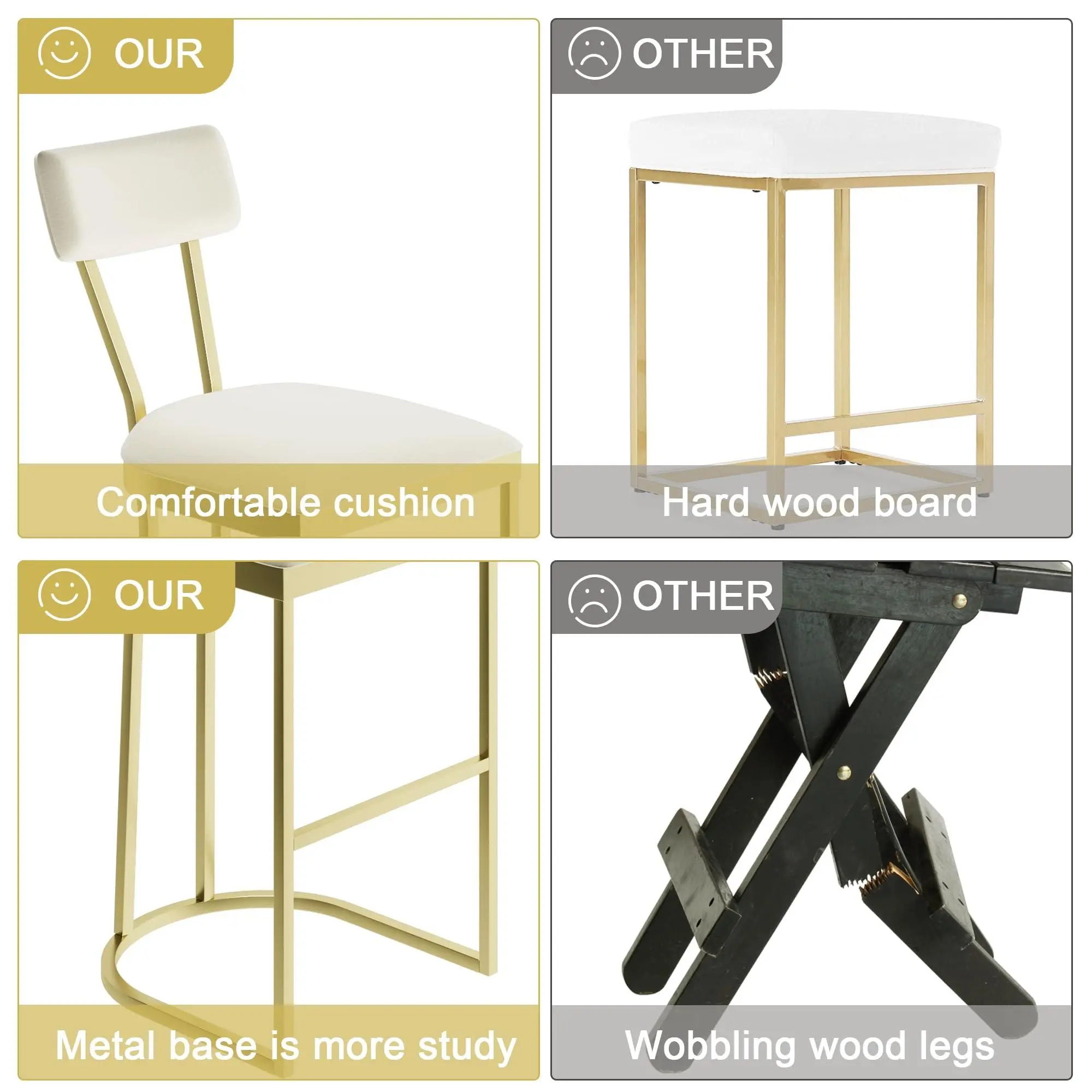 Stable Footrest & Metal Frame : Equipped with ultra-thick metal legs and durable U-shaped steel bar structure, these counter stools bring reliable strong support and excellent stability. Specially designed non-slip foot pads can effectively protect your floor from scratches while moving these stools for kitchen counter, so that you can enjoy your meals or gatherings with peace of mind