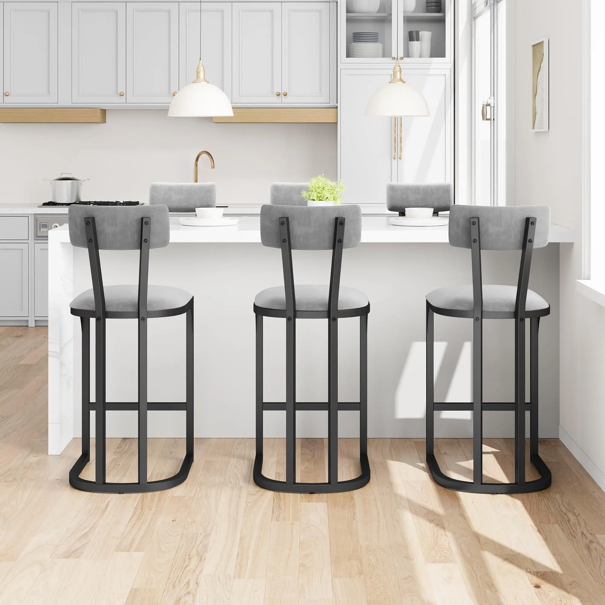 Ergonomic Back & Seat Design : With 9.1 in high back support that hugs the spine and follows its natural curve, this counter height bar stools provide ample support for the back and effectively relieve back pressure during long hours of sitting. The velvet upholstery—soft and breathable—ensures that long sittings remain comfortable and stress-free, making it ideal for extended wine tastings, family dinners, or casual gatherings