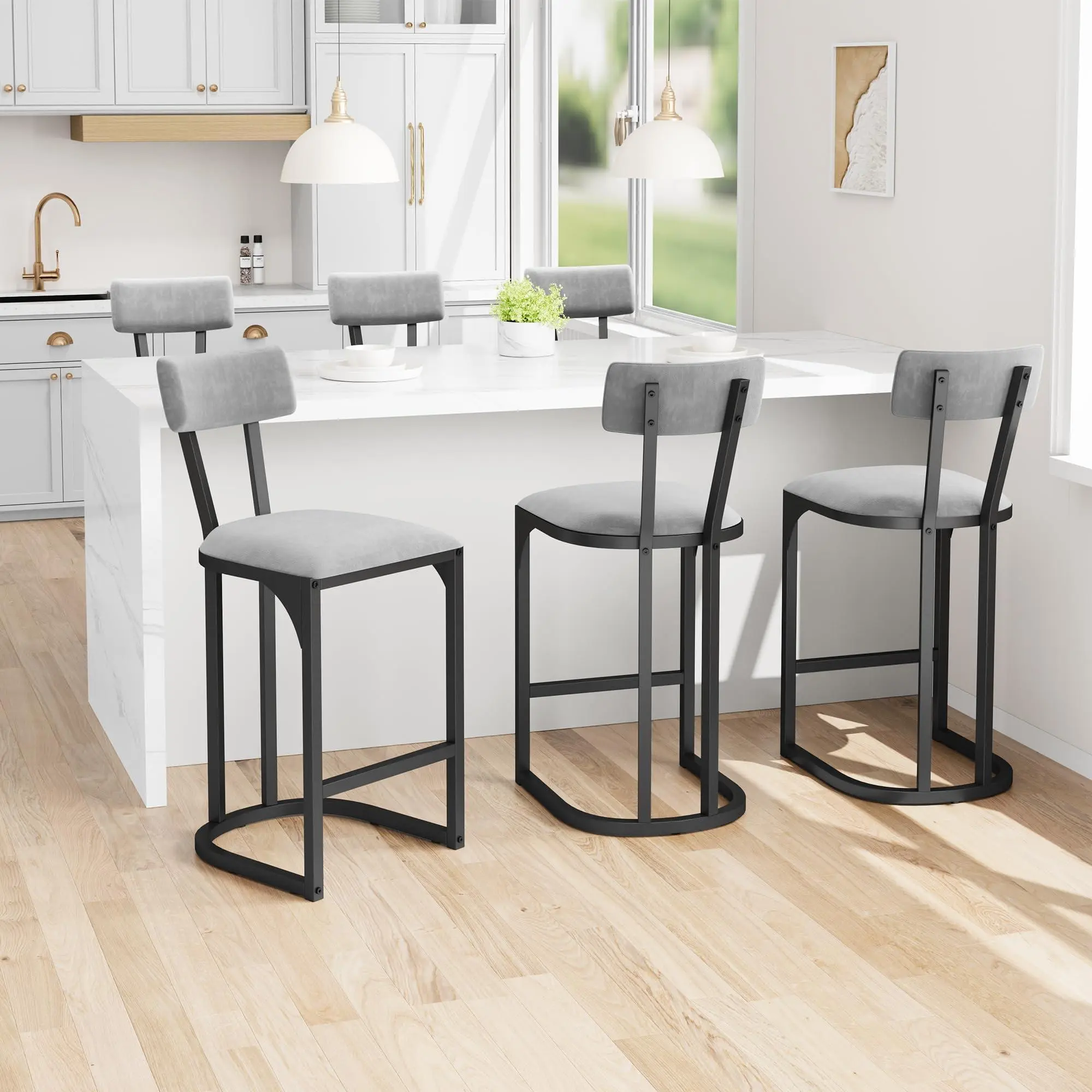 Bar Stools Set of 6, Counter Height Bar Stools for Dining Room, Island Chairs for Kitchen Table, Tall Barstools with Back, Metal Counter Stools with Upholstered for Home Bar (Gray)