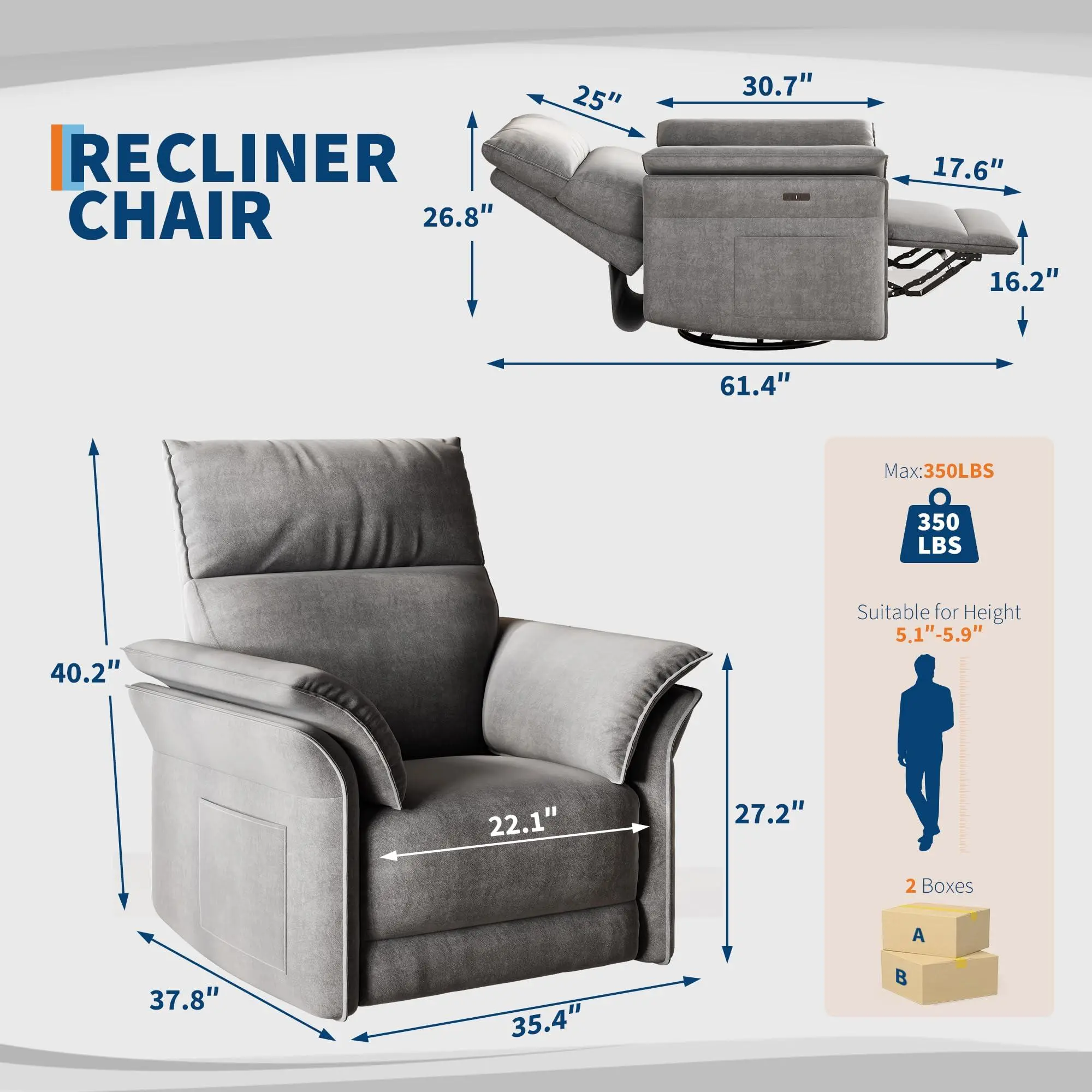 Multi-Functional Relaxation in Motion:Experience ultimate relaxation with three smooth functions: effortlessly 270° swivel to reach any area, gently rock and glide to soothe, and use the power recline to adjust from an upright 90° to a relaxed 135° position. Perfect for reading, watching TV, or napping.