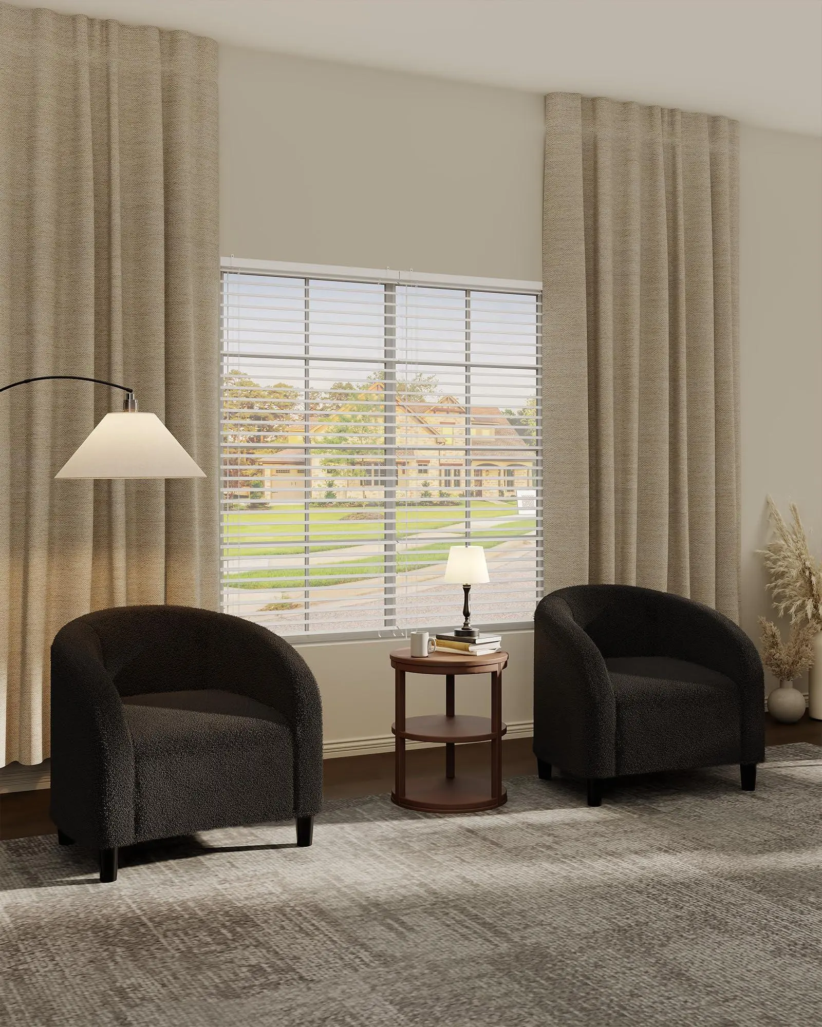 Versatility: Whether placed in a spacious living room, a snug bedroom, a dressing room, a quiet study room, or a formal reception room, this barrel chair set of 2 adapts perfectly, serving as an elegant accent chair for any space