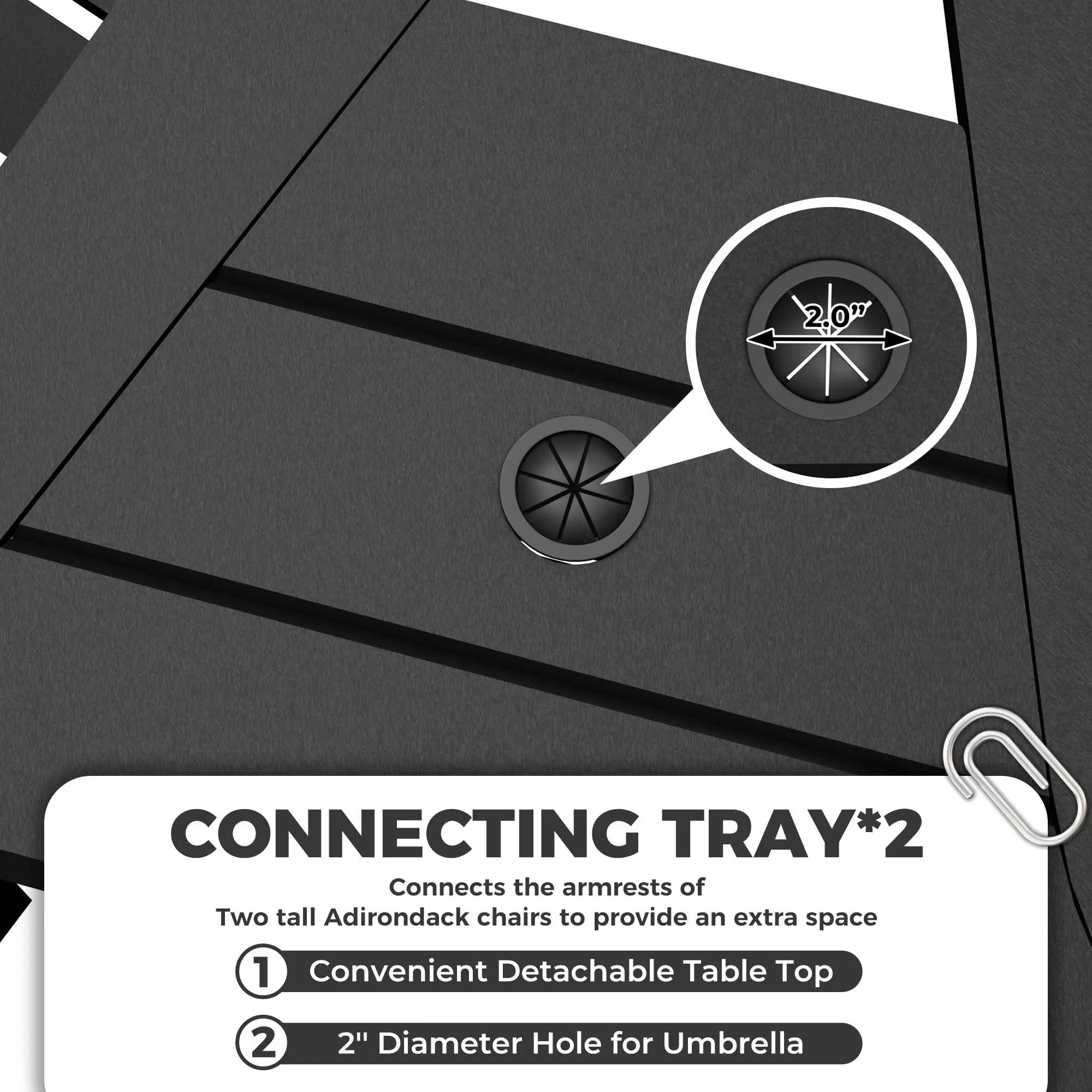 【REMOVABLE TRAY WITH UMBRELLA HOLE】Includes 2 removable trays (35 lbs capacity each) with 2-inch umbrella holes, perfect for holding drinks, snacks and adding convenient shade to your outdoor space.