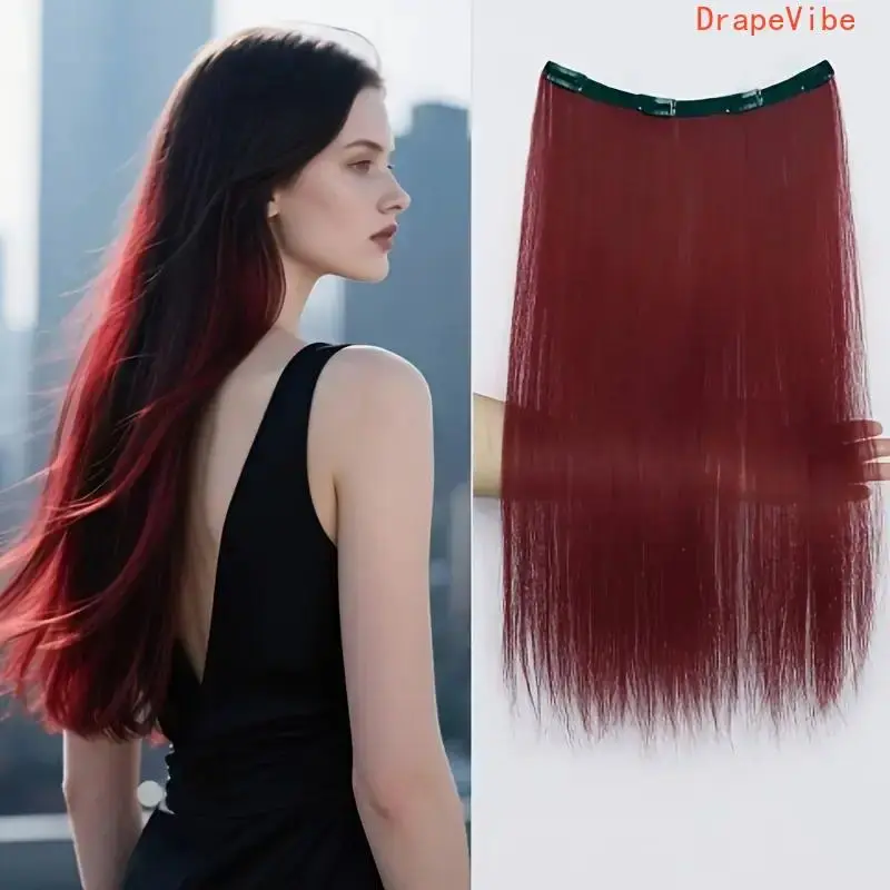 Extra Long 55.5cm One Piece Clip In Hair Extensions Long Straight Synthetic Hairpiece Easy Application For Daily And Festival Wear