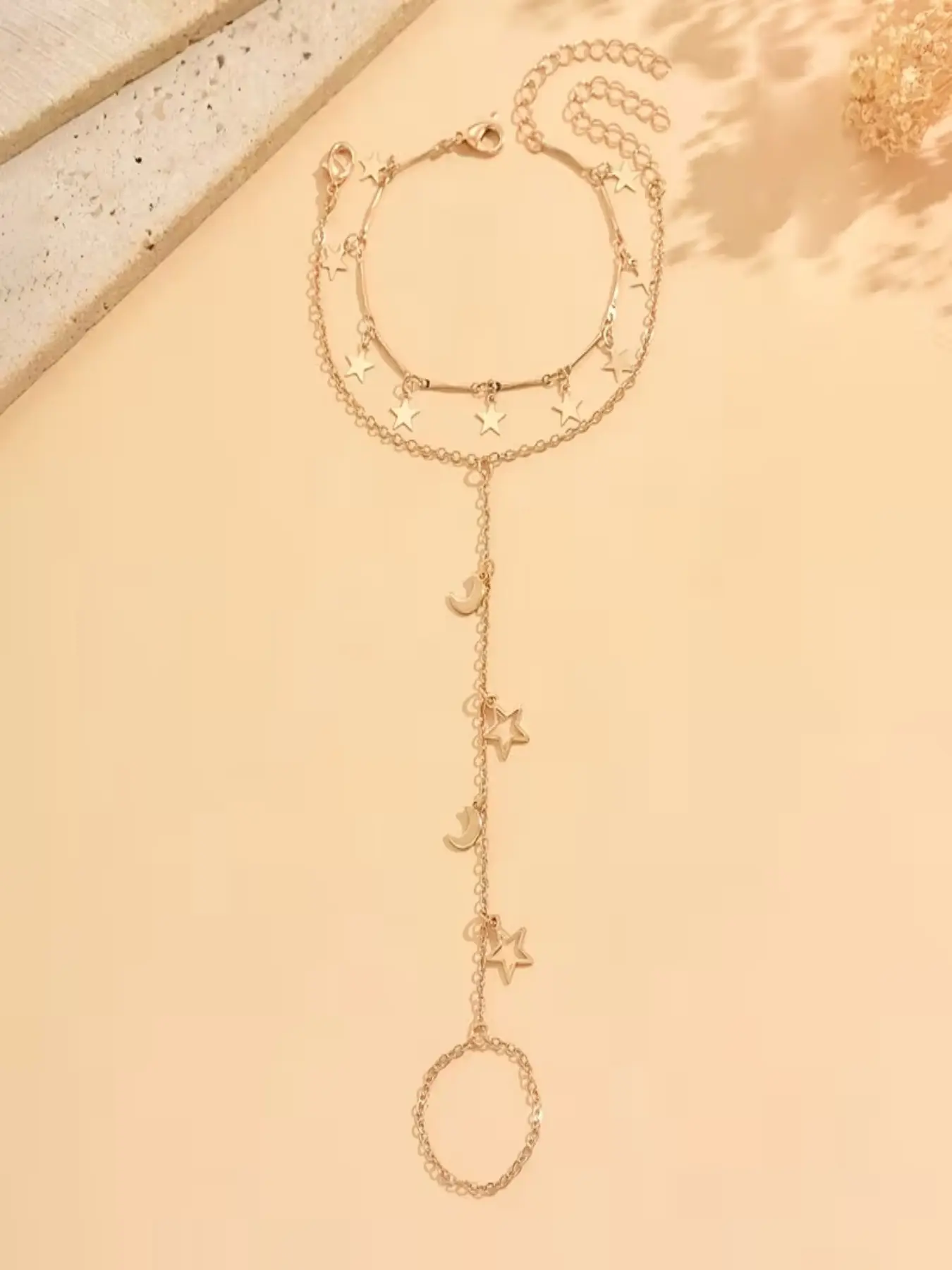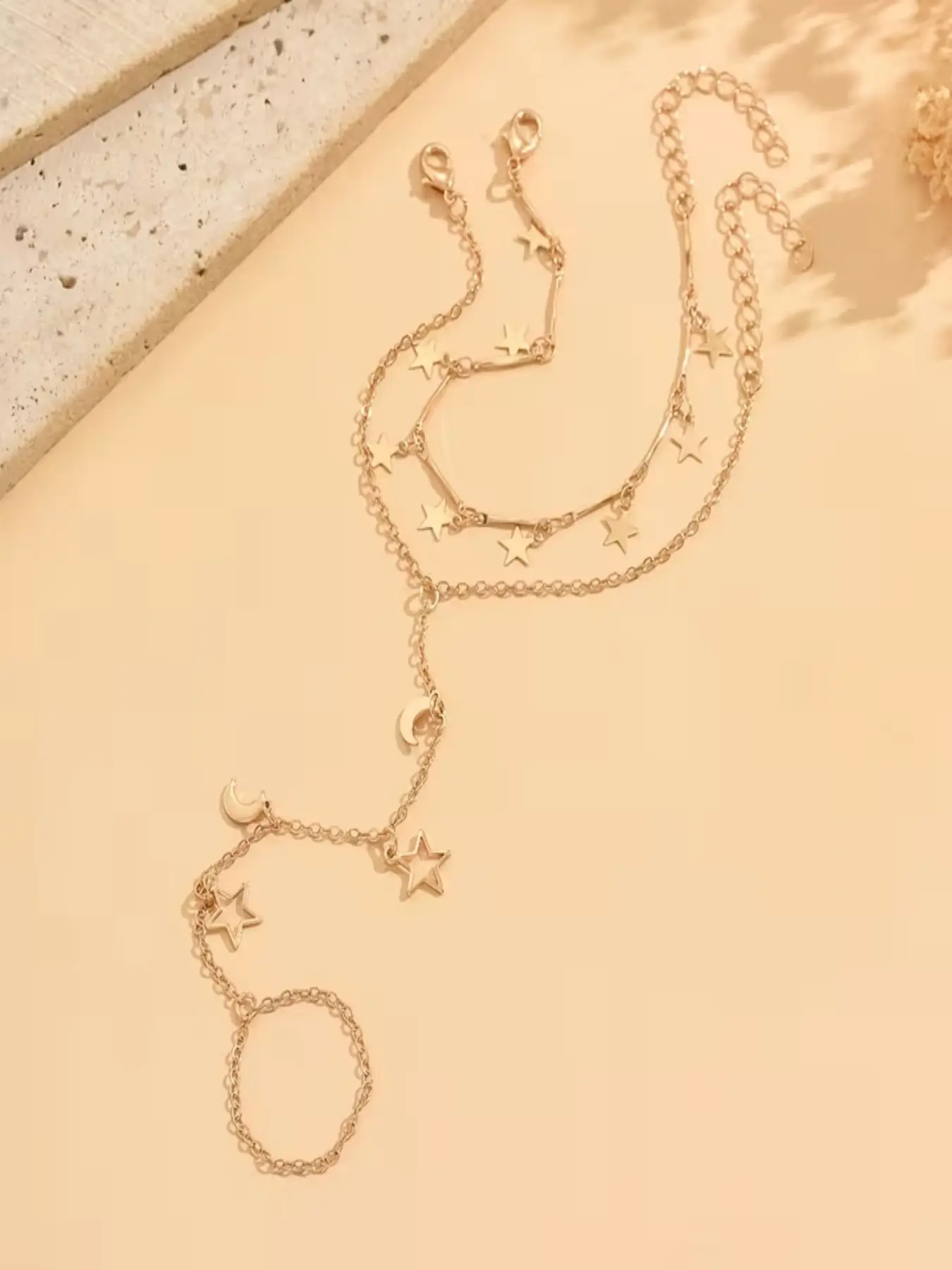 2pc Layered Bracelet, Retro Star Moon Design, Multi-Layer Connected Finger Bracelet, Casual Women's Accessory, Birthday Gift