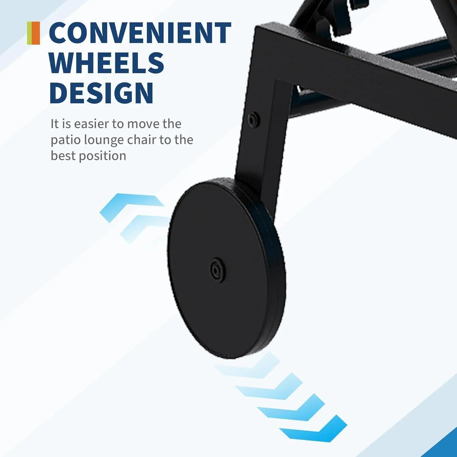 Effortless Mobility with Rear Wheels: Enjoy Effortless Mobility throughout your outdoor space without heavy lifting. Equipped with two multi directional rear wheels, this Outdoor Poolside Furniture can be moved easily from the sunny deck to a shady garden spot. The lightweight yet sturdy iron frame ensures you can reposition your Garden Lounge Chair effortlessly, making it perfect for chasing the sun or clearing the lawn for a family party.