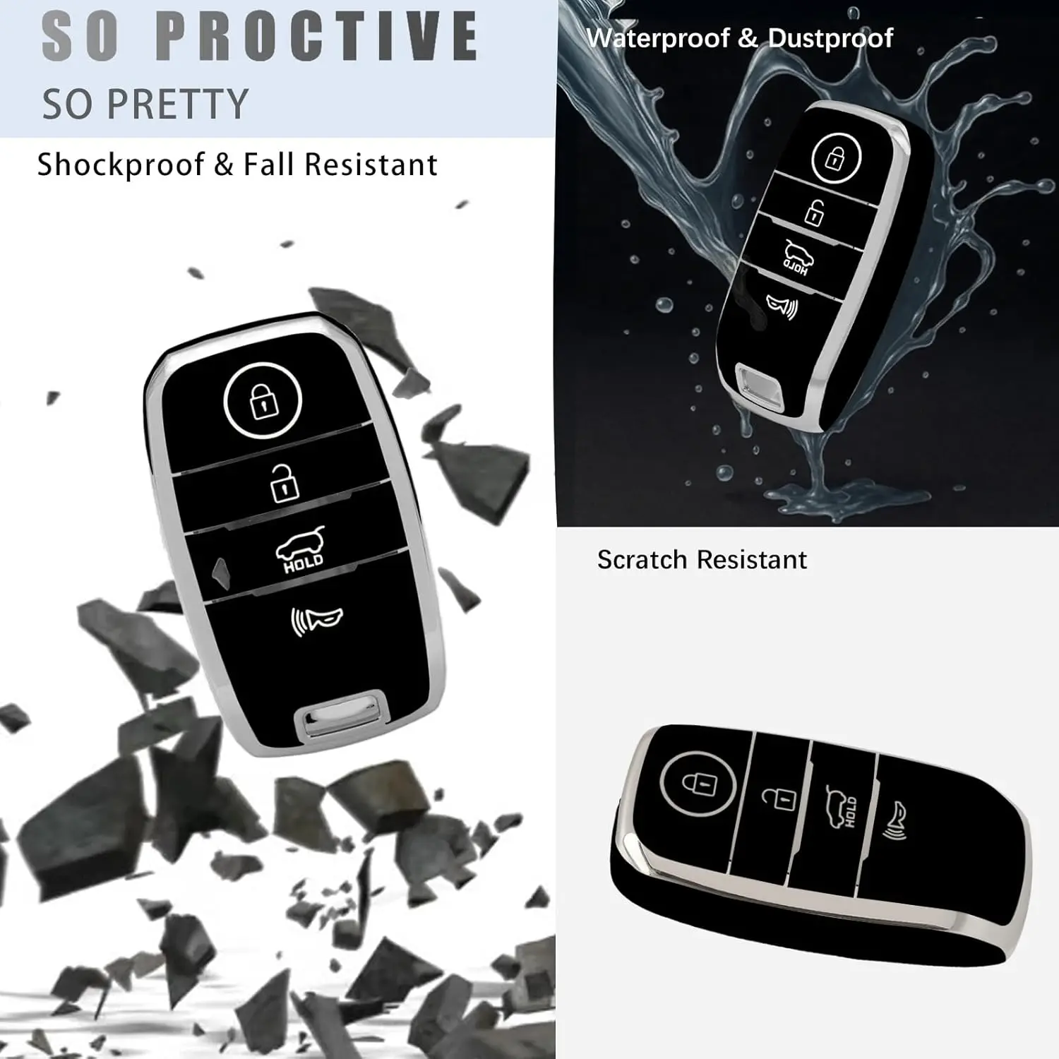 for Kia Key Fob Cover, TPU Key Fob Case Cover Fits for Kia Forte Koup NIRO Optima Rio Sorento Soul Sportage Car Accessories Smart Key Holder, Silver Black