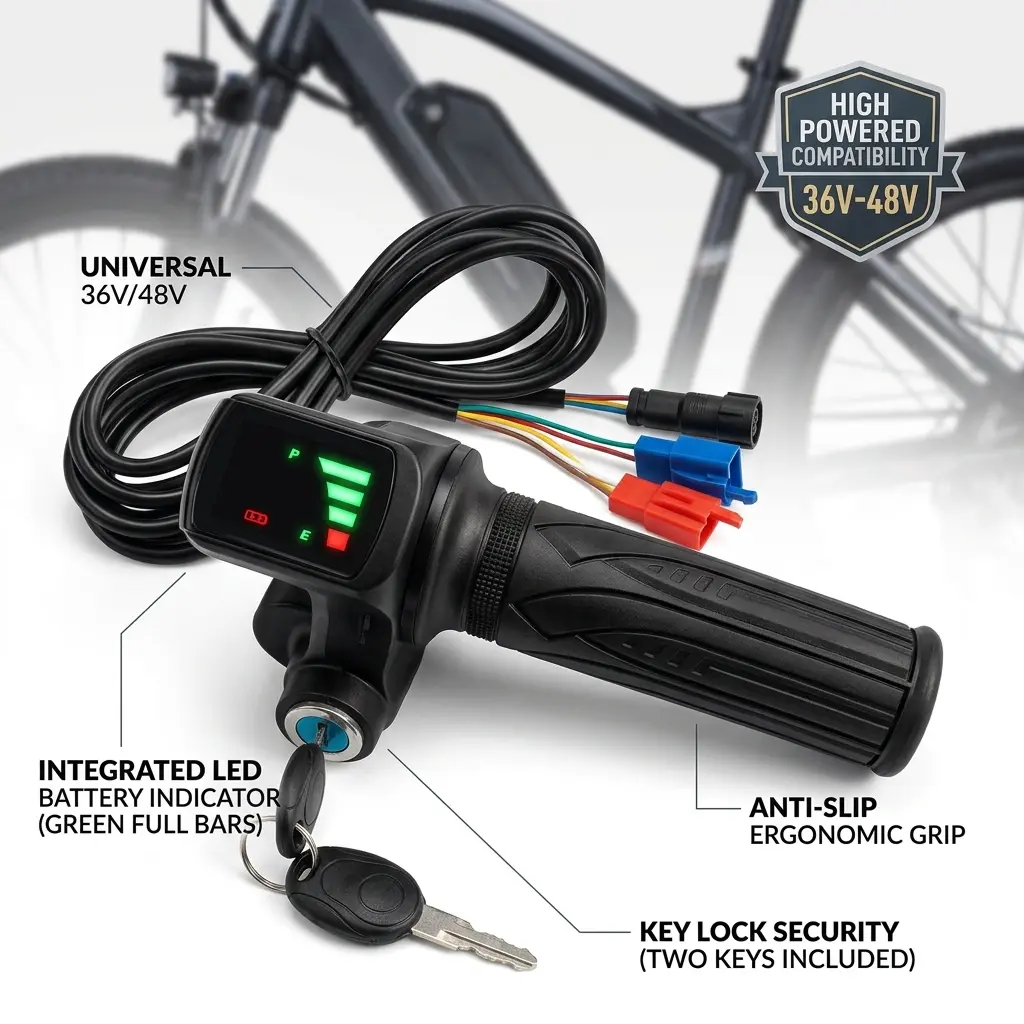 Electric Bike Throttle 36V48V Accelerator for E-bike/Electric Scooter Accessory Throttle Handlebar with LED Display