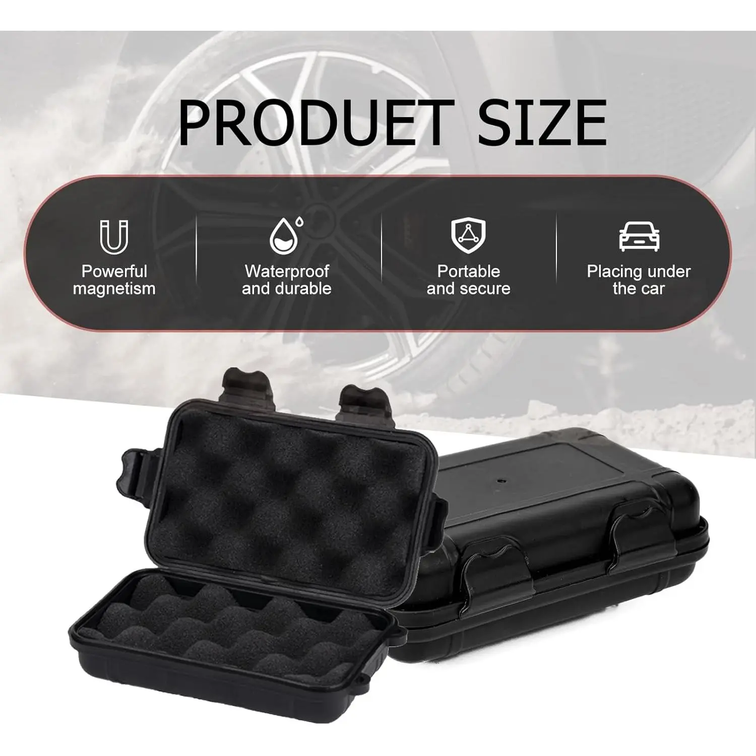 Car Key Box, Strong Suction Key Storage Organizer with Separating Buffer Sponge, Waterproof Hidden Shock-absorbing Tool Box, Universal for Under Car Mount Storage (Black)