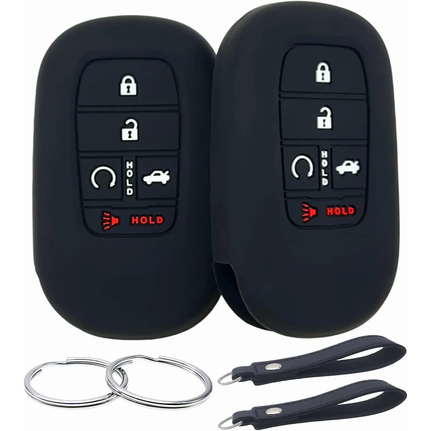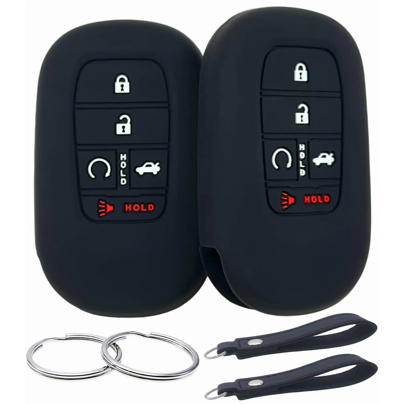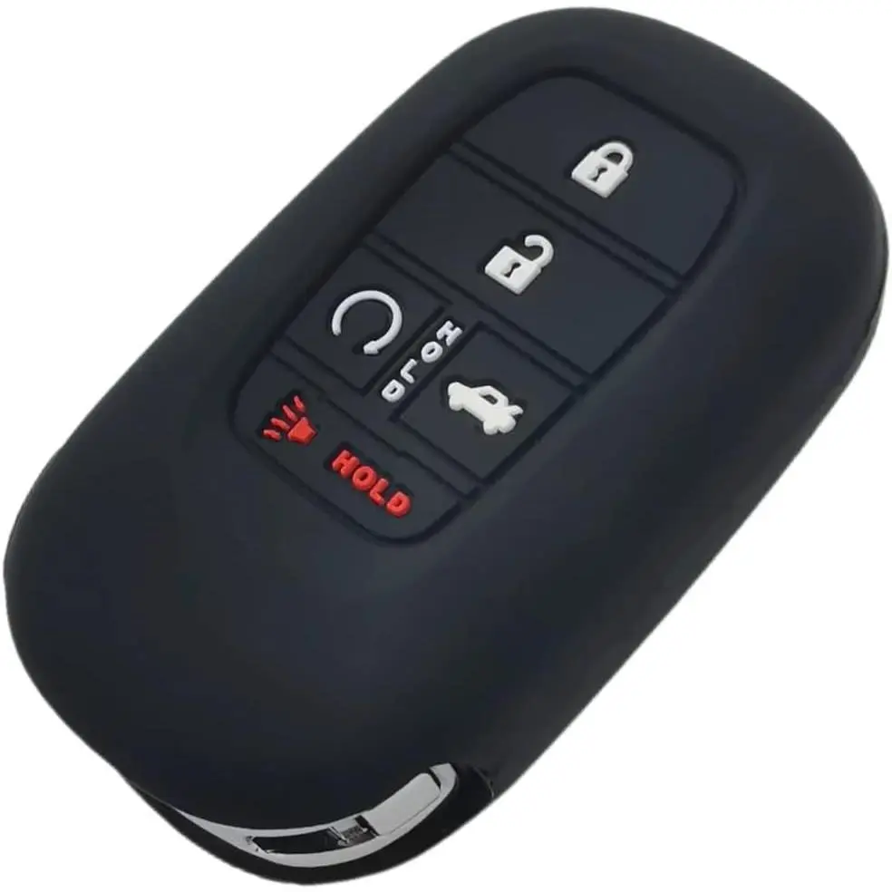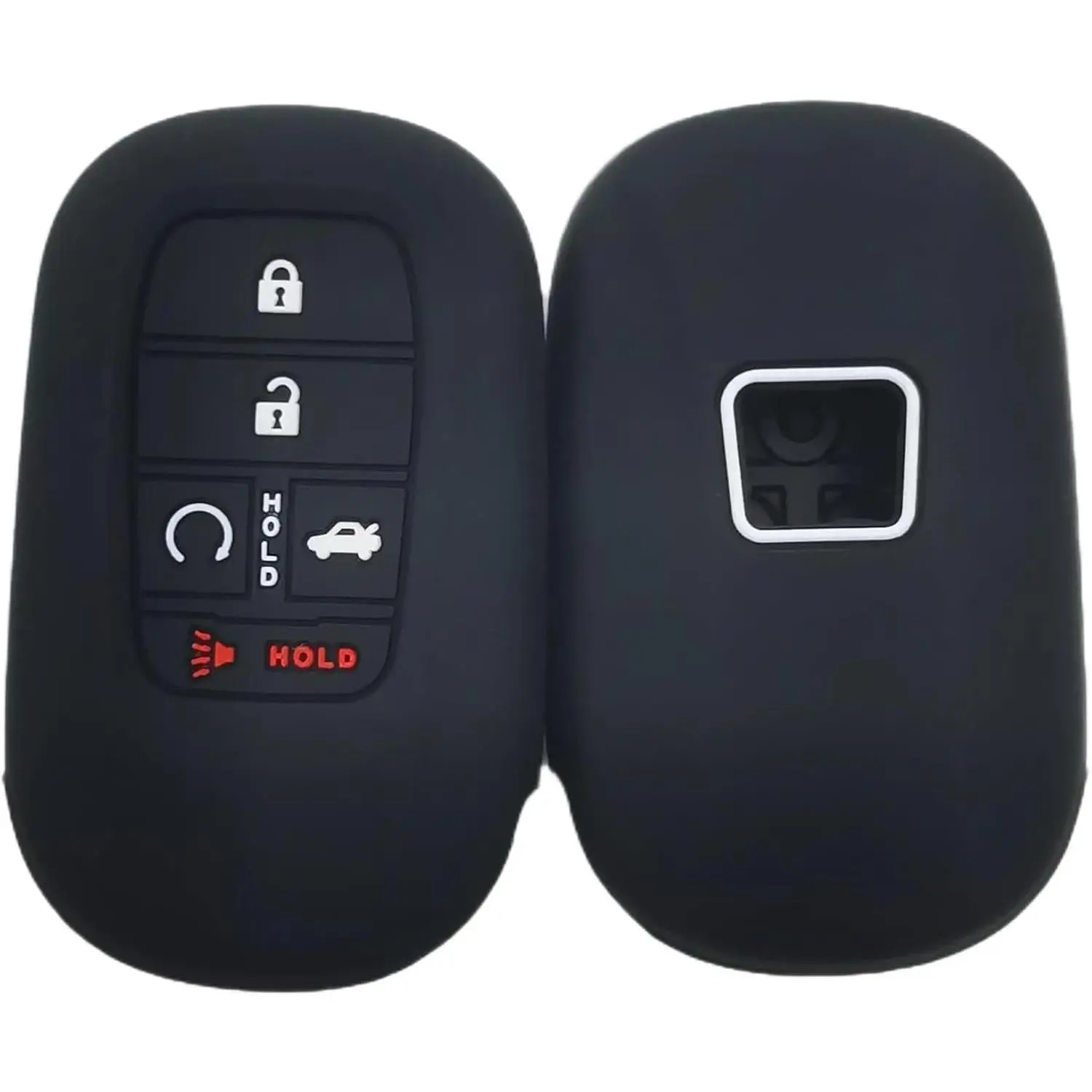 Silicone Rubber Key Fob Cover Compatible with (5 Buttons) 2022-2026 Honda Accord Civic HR-V CR-V Pilot Sport SI EX EX-L Touring (Black Black)