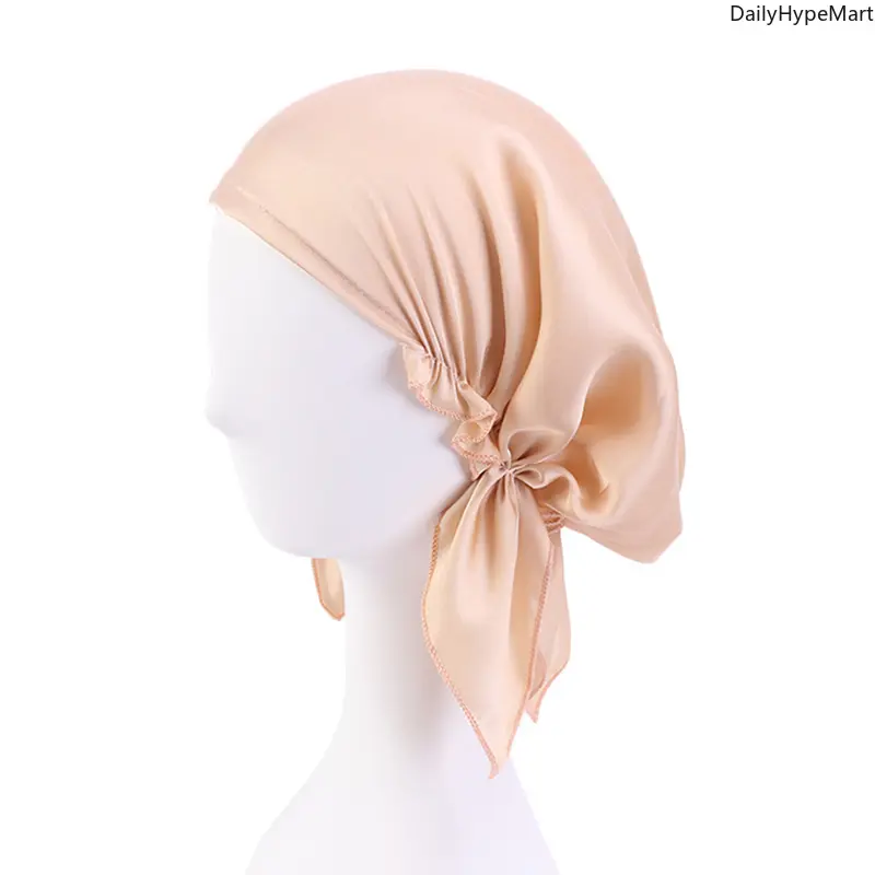 Satin Silk Sleep Cap, Women Triangle Elastic Chemo Beanie, Solid Home Maternity Cap