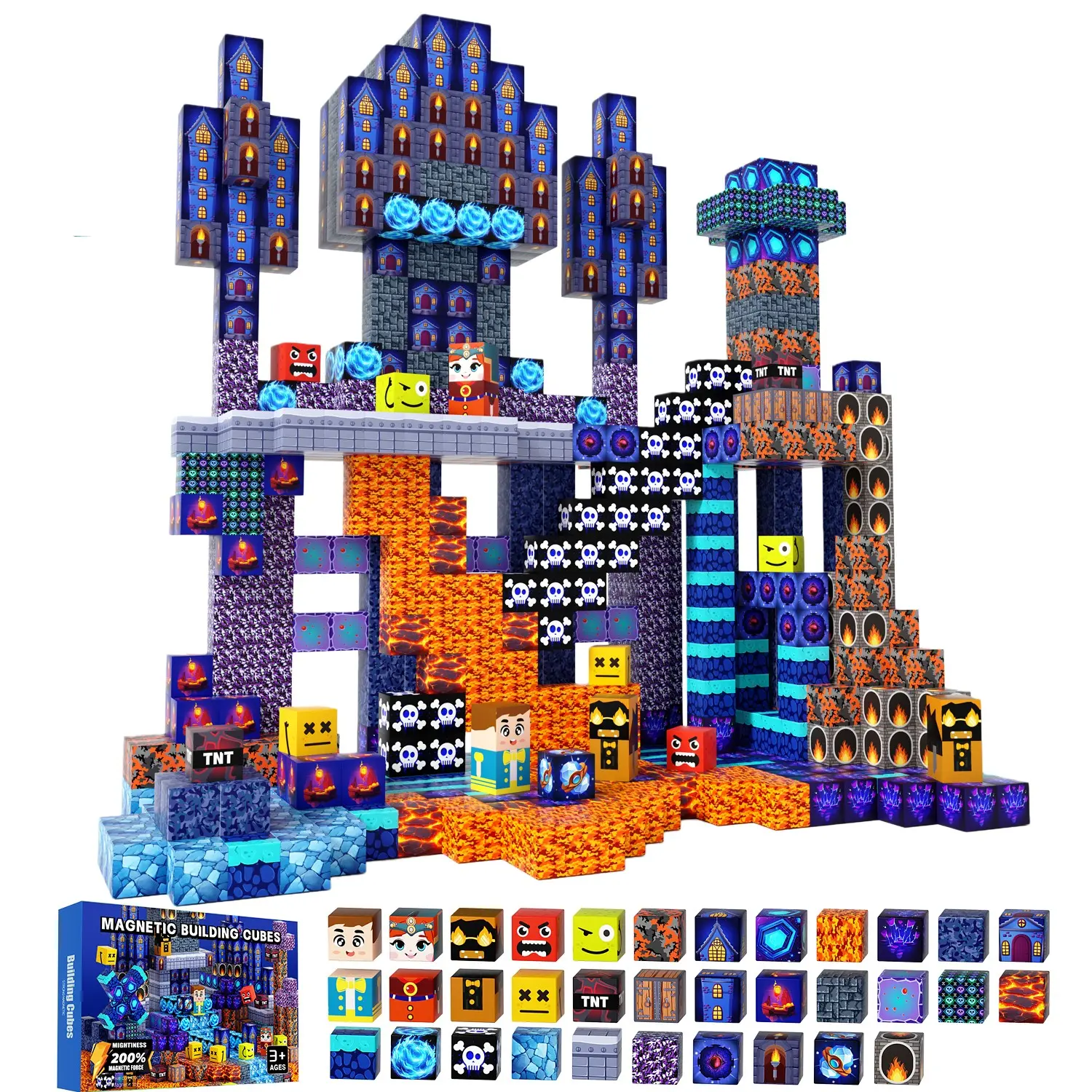 Magnetic Blocks 100/150pcs Magnetic Cubes Building Blocks Set, Blue Castle Ice Castle Construction Toys for Kids, STEM Montessori Sensory Development, Spatial Reasoning, Large Size Gift for Age 3+ Girls Boys