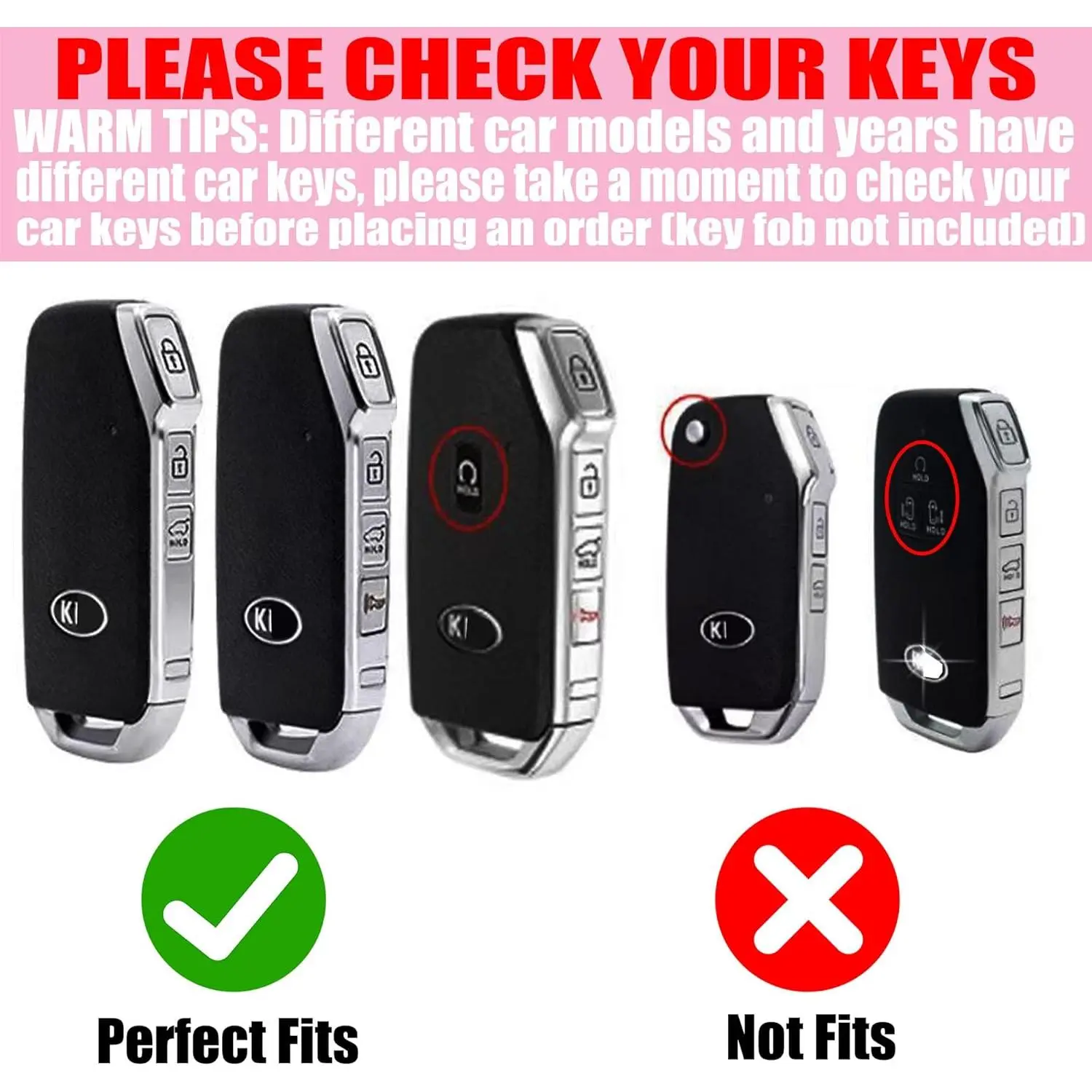 Only compatible with Kia 2020-2022 Soul 2019-2021 Forte 2020-2021 Telluride K5 2021-2022 Seltos NIRO Sportage Sorento smart key. The model is only for reference, please DOUBLE CHECK your key shape and button labels carefully to make sure it is the same as the picture.