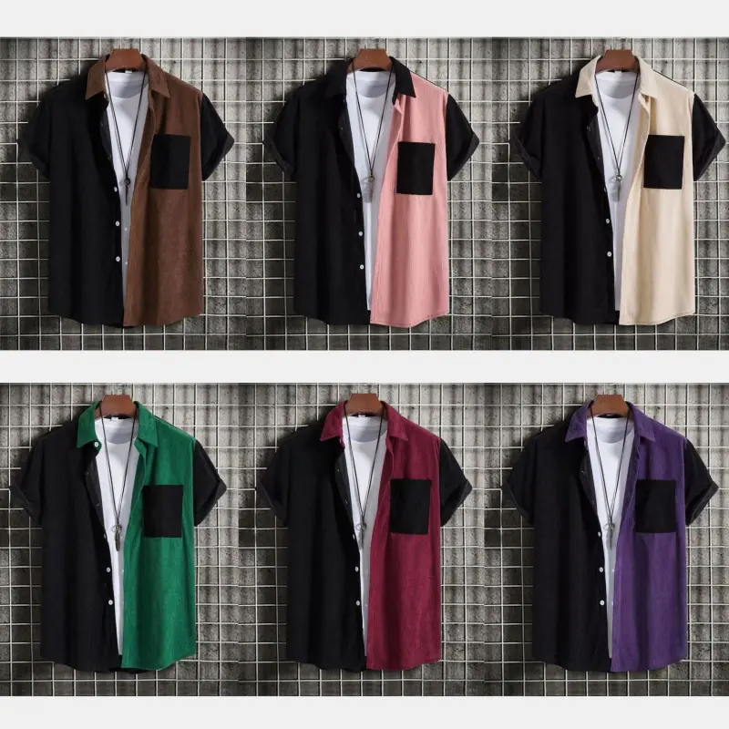 Product number: DX01Fabric Name: CorduroyNumber of items: 20 piecesStyle: Light and casualFit: Regular fitCollar Type: LapelSleeve Length: Short SleevePattern: Color combinationThickness: OrdinaryStyle details: Color coordinationSuitable for: Young peopleYear/Season of Release: Summer 2026Main fabric component: viscose fiberMain fabric component content: 25%Color: Purple, burgundy, dark green, pink, khaki, camelSize:M,L,XL,XXL,XXXLCraft: Collage/StitchingApplicable age group: AdultsApplicable Gender: MaleProduct Category: Shirts