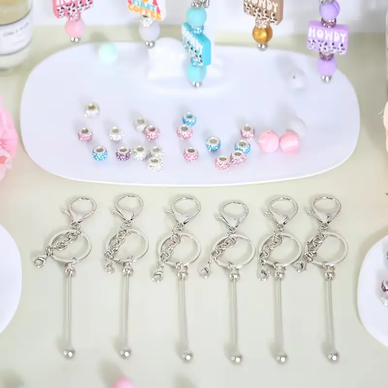 6 Set Beadable Keychains, Bulk Beadable Keychains Bars DIY Blank Keychain, Metal Beaded Keychain with Bars Silicone Beads Spacer Beads