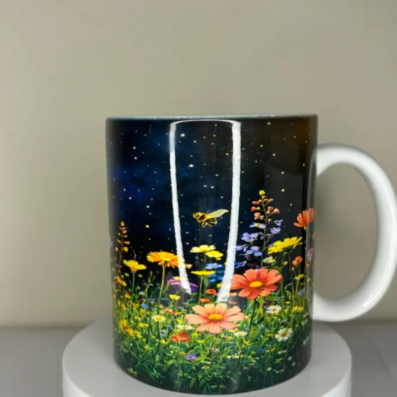 This beautifully designed mug features a dreamy wildflower field with delicate bees under a starry night sky, creating the perfect mix of cozy, calming, and eye-catching.