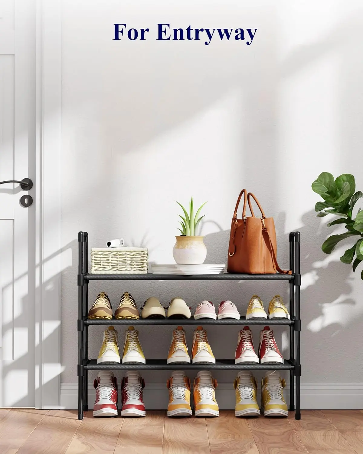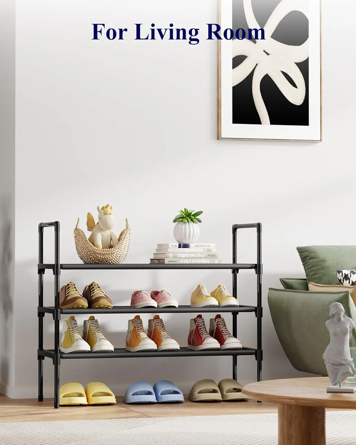 ·GENEROUS CAPACITY: Designed with a spacious 3-tier structure and measuring 27.6''×11.8''×28.4'', this shoe shelf provides ample space to store and organize multiple pairs of footwear in one place. The wide metal shelves maximize storage potential, keeping your shoes visible, easily accessible, and your living area free from clutter.