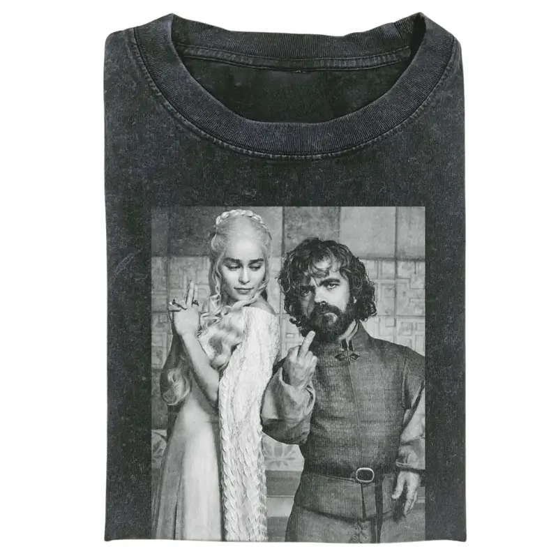 Game of Thrones Daenerys Targaryen & Tyrion Lannister Funny Meme T-Shirt, Funny Fantasy Duo Meme T-Shirt, Blonde Queen & Dwarf Graphic Tee, Unisex Streetwear