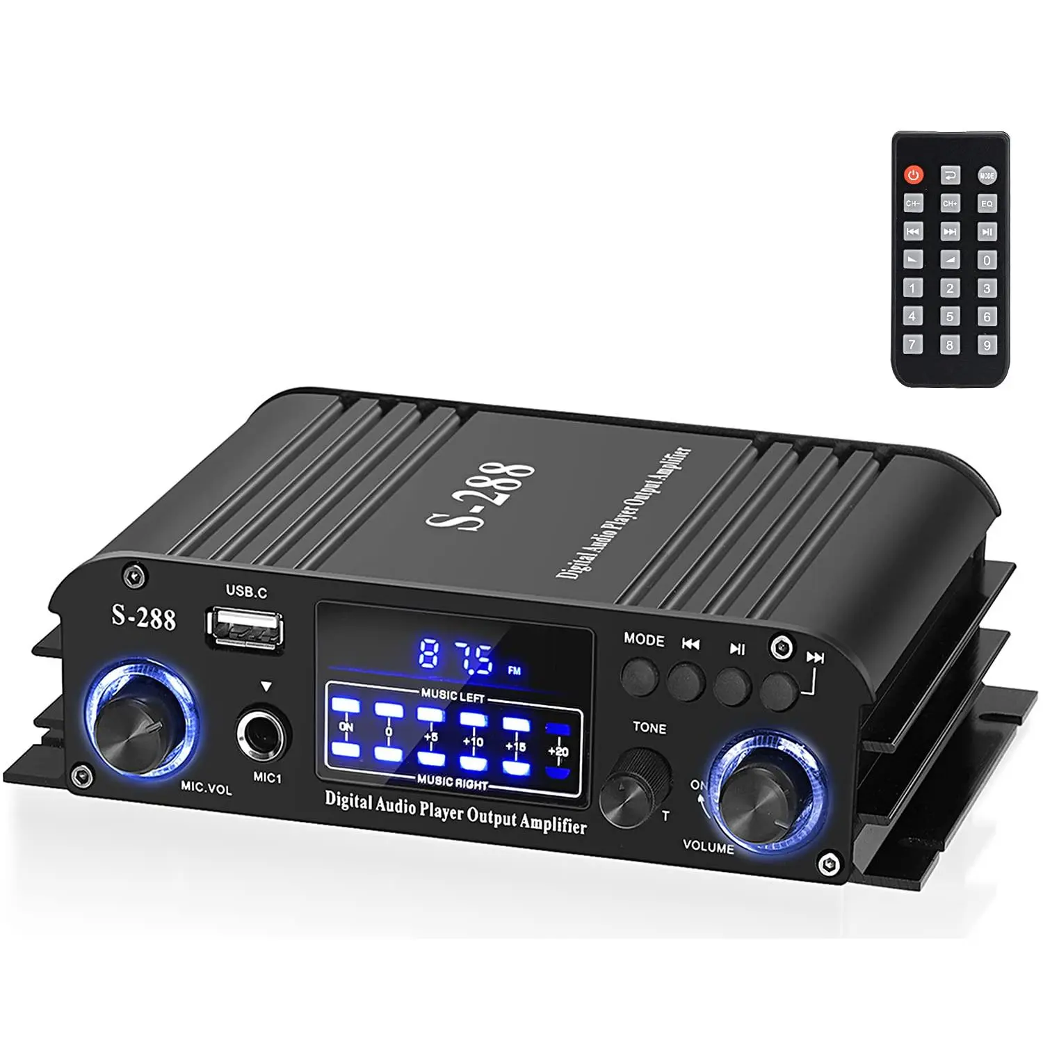 S-288 4 CH Bluetooth 5.0 Home Audio Amplifier, RMS 45Wx4, Max 600W HiFi Stereo Power Amplifier