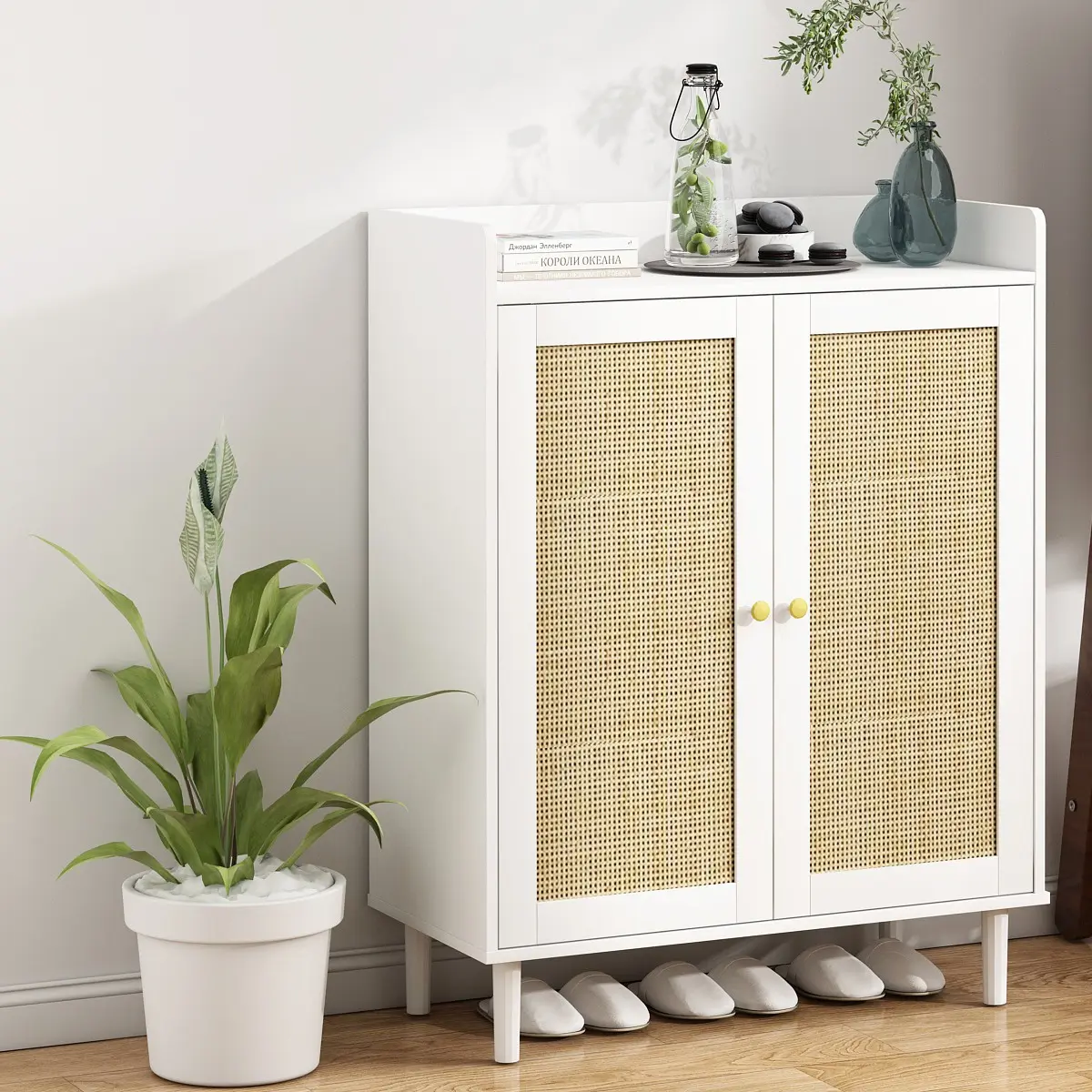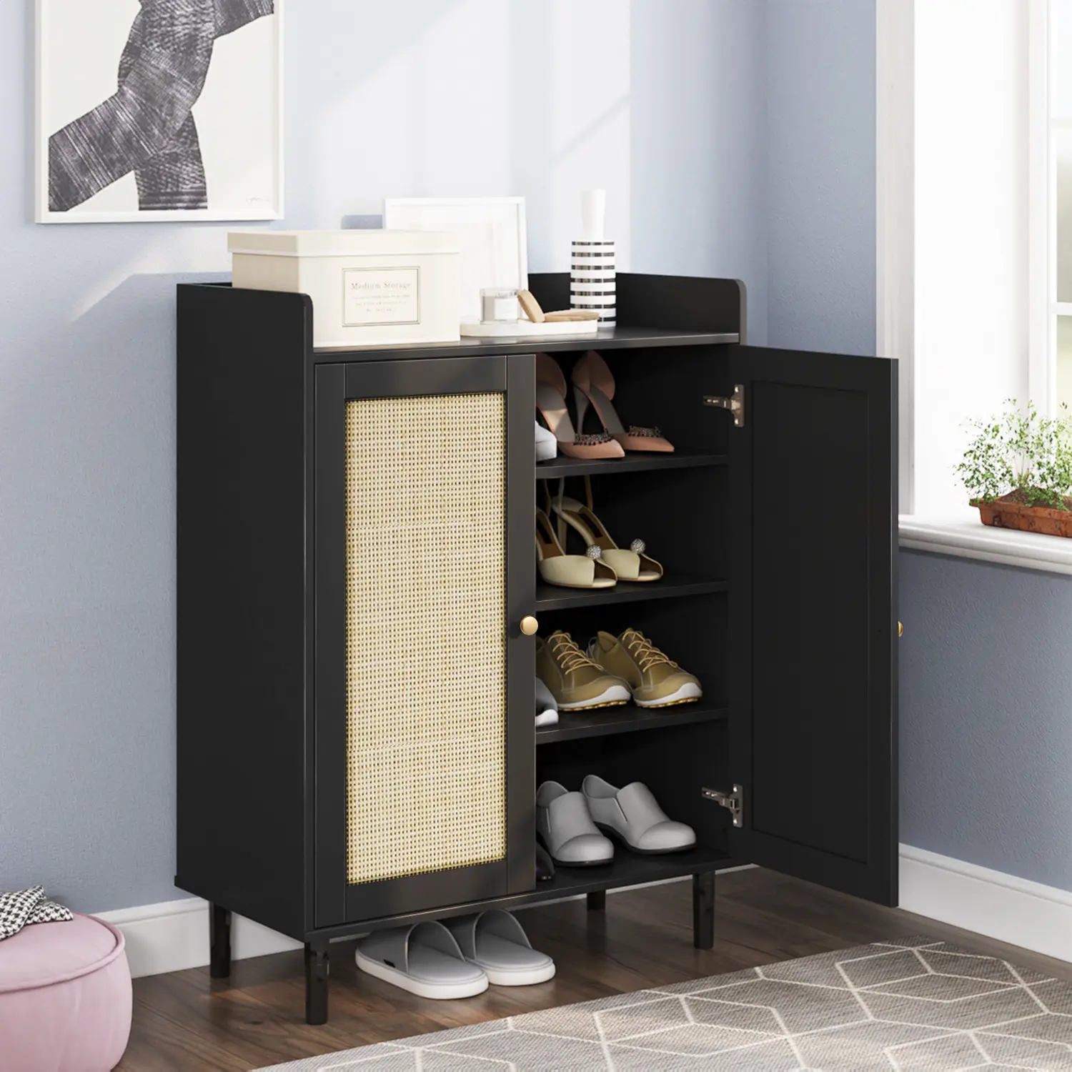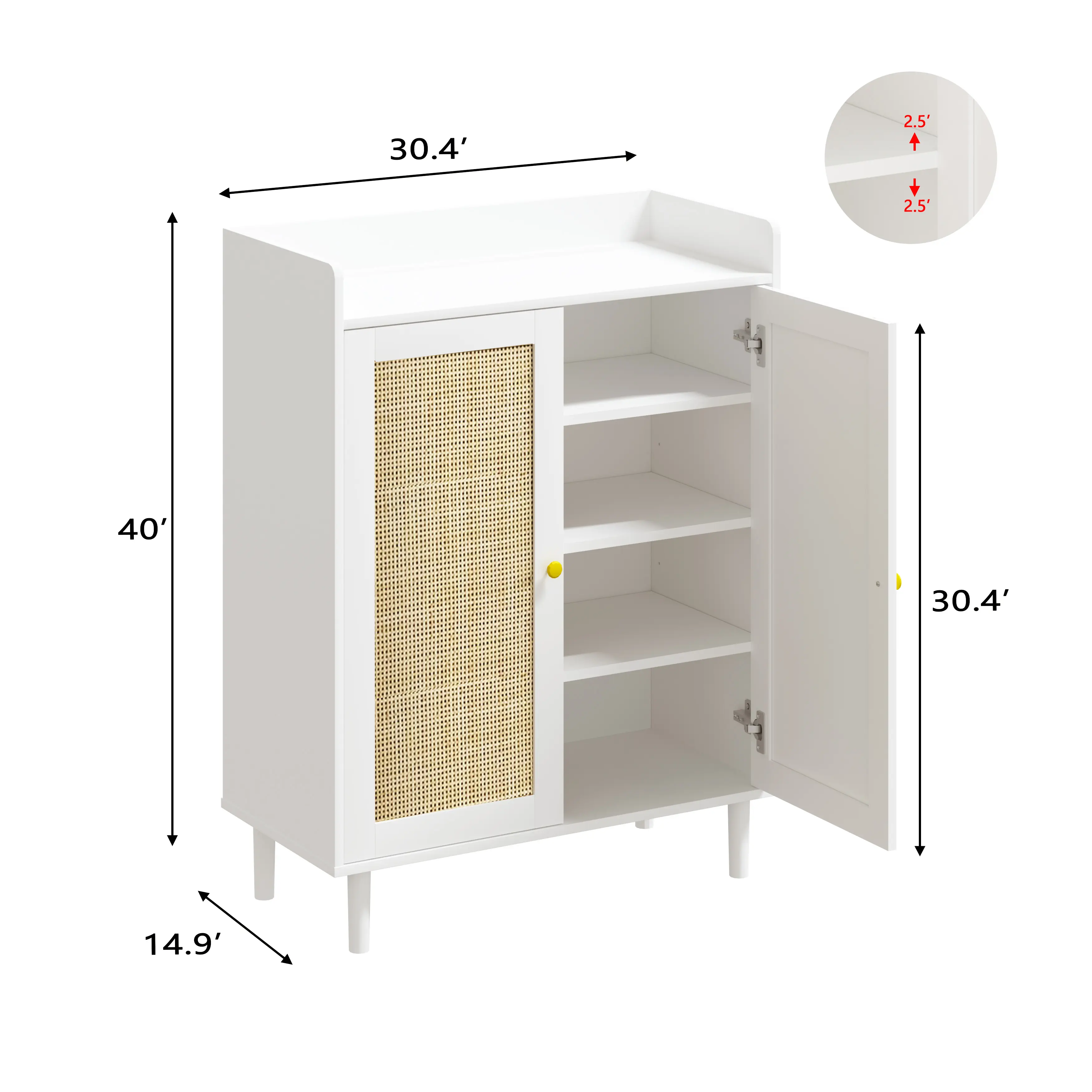 Double-door Shoe Cabinet 4-layer American Country Style With 2 Doors Adjustable Shelves Freestanding For Entrance Bedroom Living Room